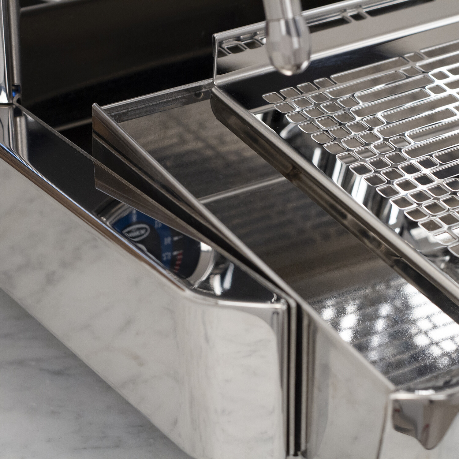 This updated version of the Vetrano features white LED lighting running along the outside of the body, a redesigned black and blue manometer and a E61 commercial style group head with a chrome-plated handle, and a cup warmer. The hinged cover removes the need to remove the cup warming tray if and when you need to refill the water reservoir. Every Vetrano 2B LED also comes with single and double-spouted, commercial style 58 mm portafilters to provide even more temperature stability.