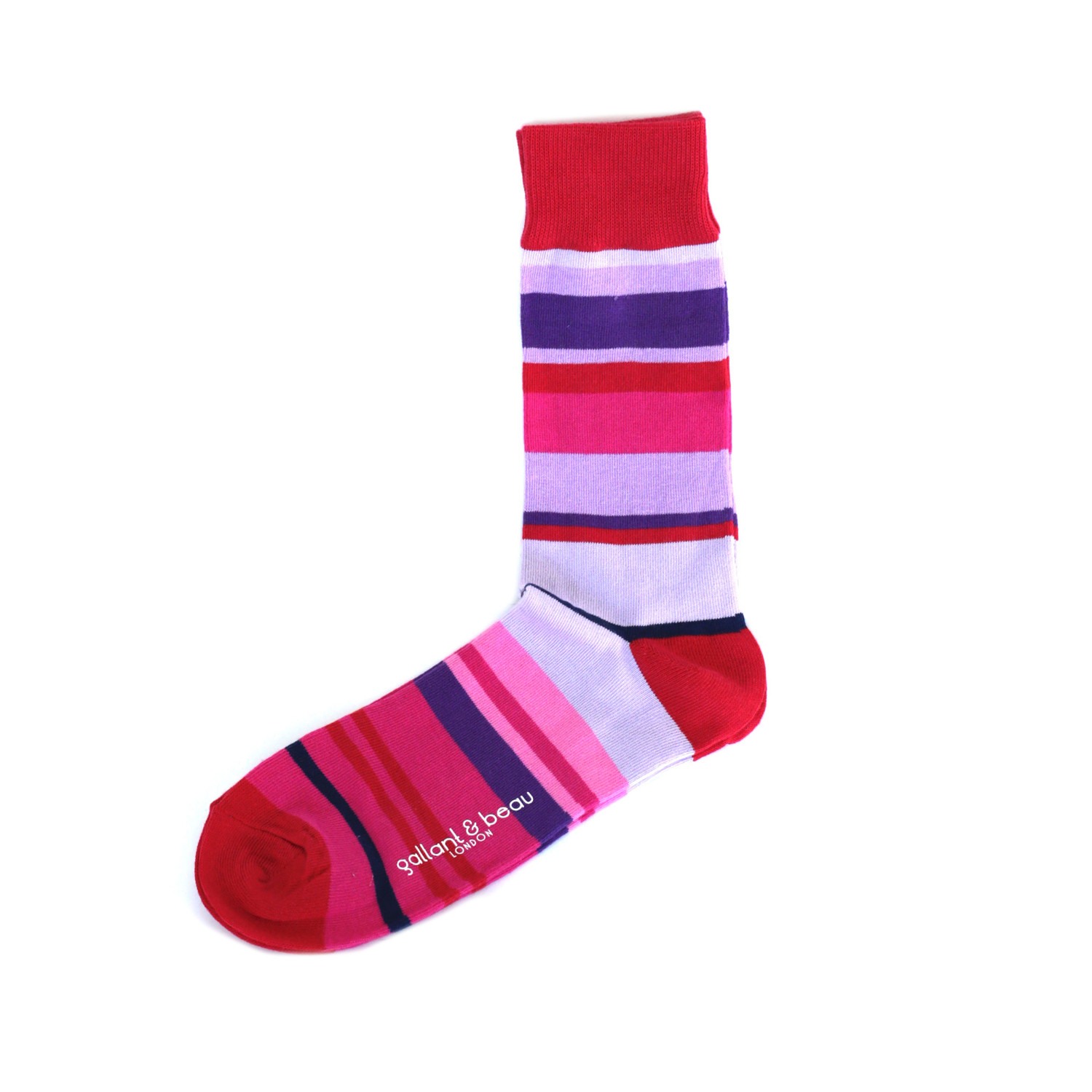 Treat your feet with these luxury socks in fuchsia and purple. Gallant & Beau is made for the man who believes in color, a modern man who can wear his wardrobe with confidence. With a mid-calf height and designer logo, this pair of socks make up essential wardrobe basics that look anything but boring.