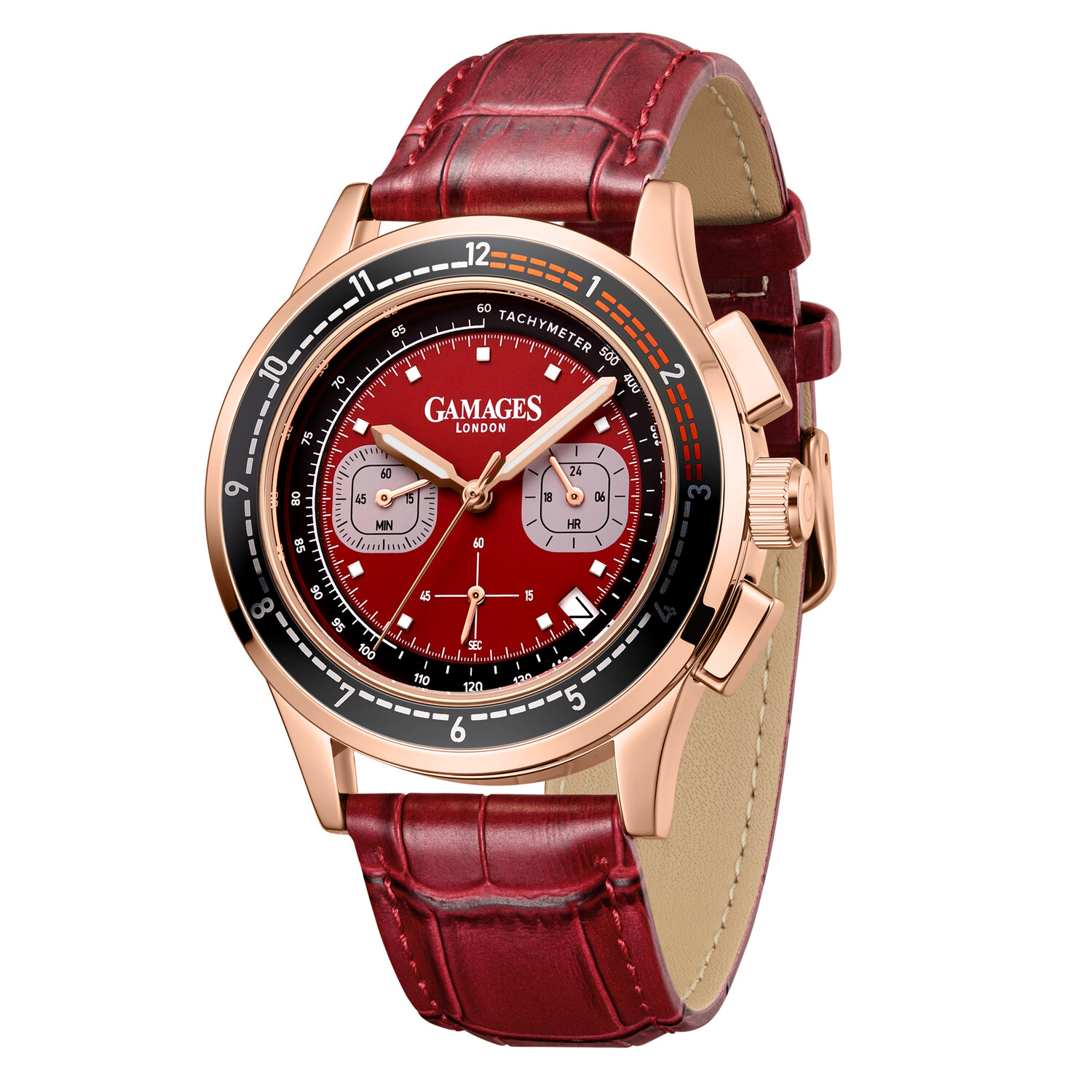 The Gamages Of London logo-engraved 304 stainless steel caseback offers a final nod to heritage. Paired with a mahogany-red croco-patterned genuine leather strap and classic pin buckle, the watch boasts the effortless grace of a well-worn armchair in an oak-panelled study and highlights refinement rooted in tradition.