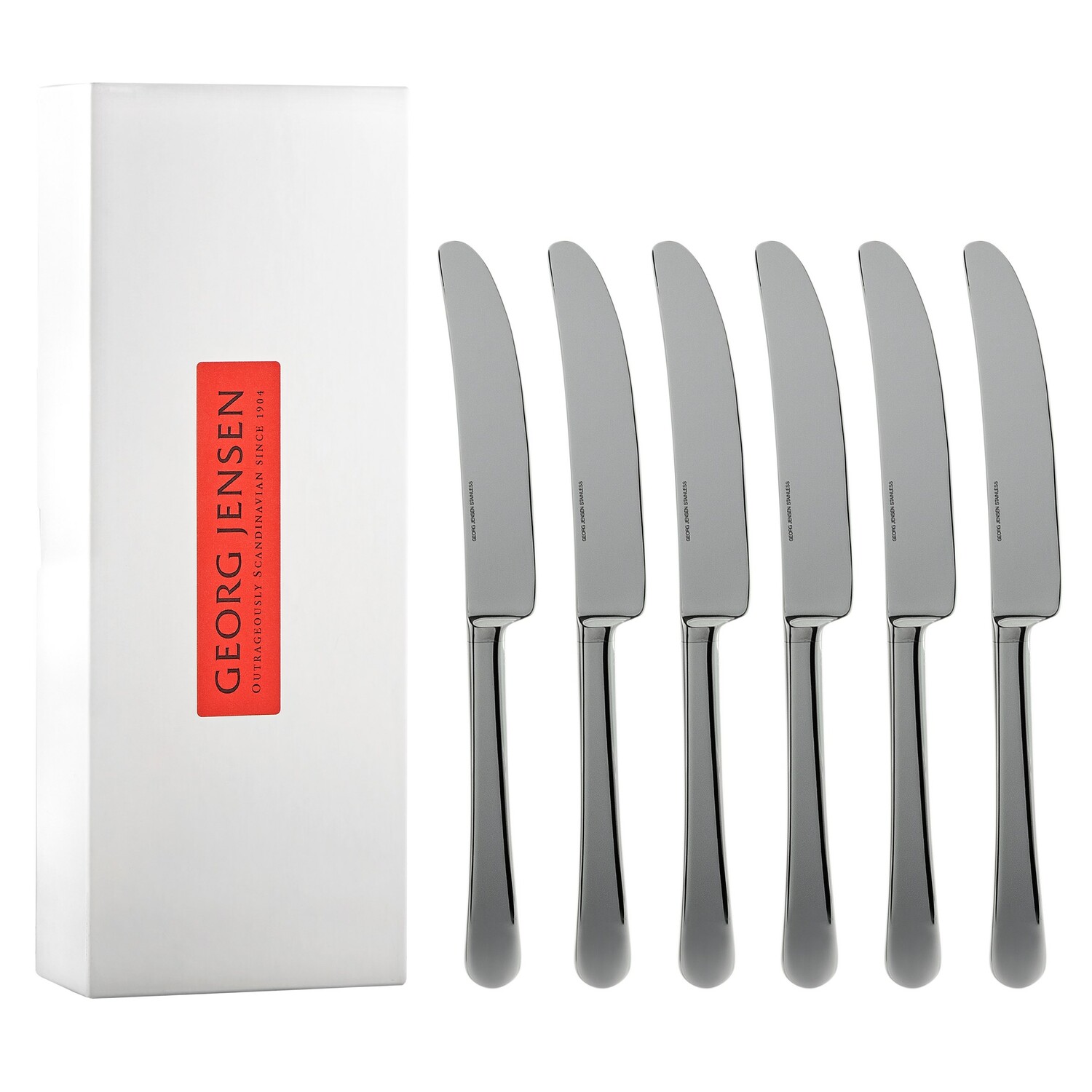 Created for the exceptional Copenhagen collection by Georg Jensen, this exquisite set includes six beautiful dinner knives that compel with their elegant design and contemporary feel. The knives are superbly crafted from stainless steel. The minimalist functionalism of the shape and the beautiful finish of the stainless steel makes the Copenhagen cutlery collection the epitome of understated luxury. Designed by Grethe Meyer in 1991, this 6 piece set can be added to as you require and will ensure your dining table always looks perfect, whatever the occasion. 8.7"L. Set of 6.