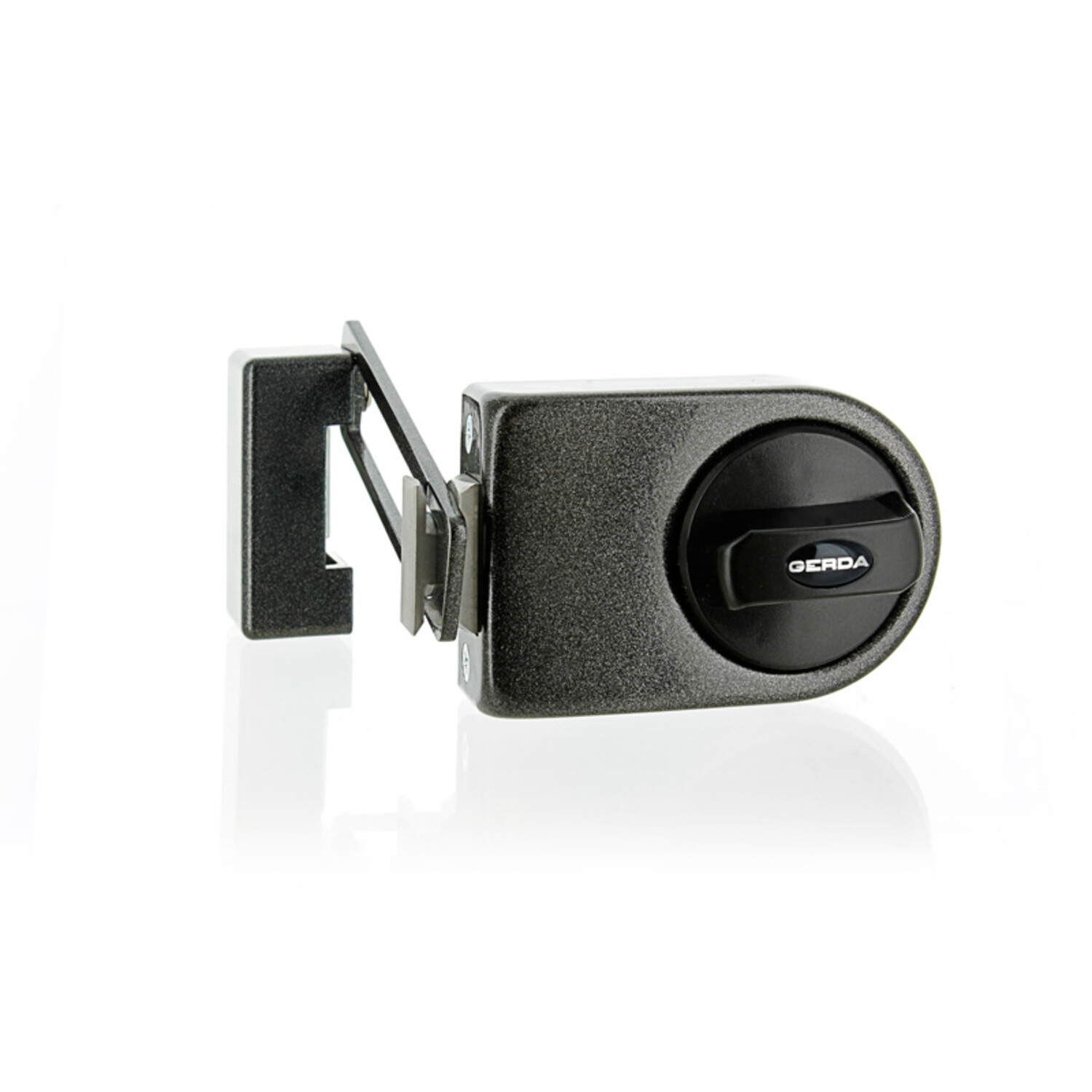 The GERDA N200 Rim Lock is a surface mounted lock which incorporates a unique door limiter feature that reduces the risk of forced entry. The door limiter is incredibly strong, but can be released with a key from the outside.