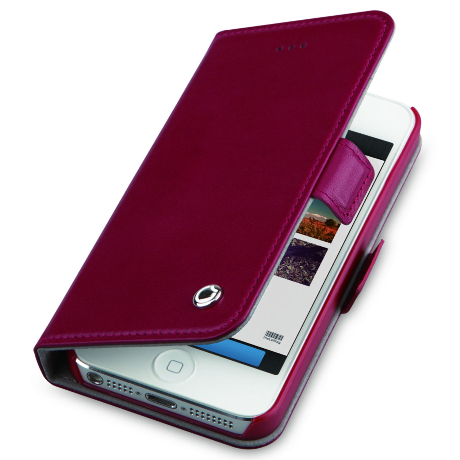 This genuine leather pocketbook is a deceptive beauty. With the exterior look of buttery leather, magnetic closure, and interior card slots, it appears to be a classic handheld wallet. However, it's more than it appears, cleverly cradling your iPhone 5/5S in the perfect holder. It even has a space so you can take pictures through your Pocketbook.