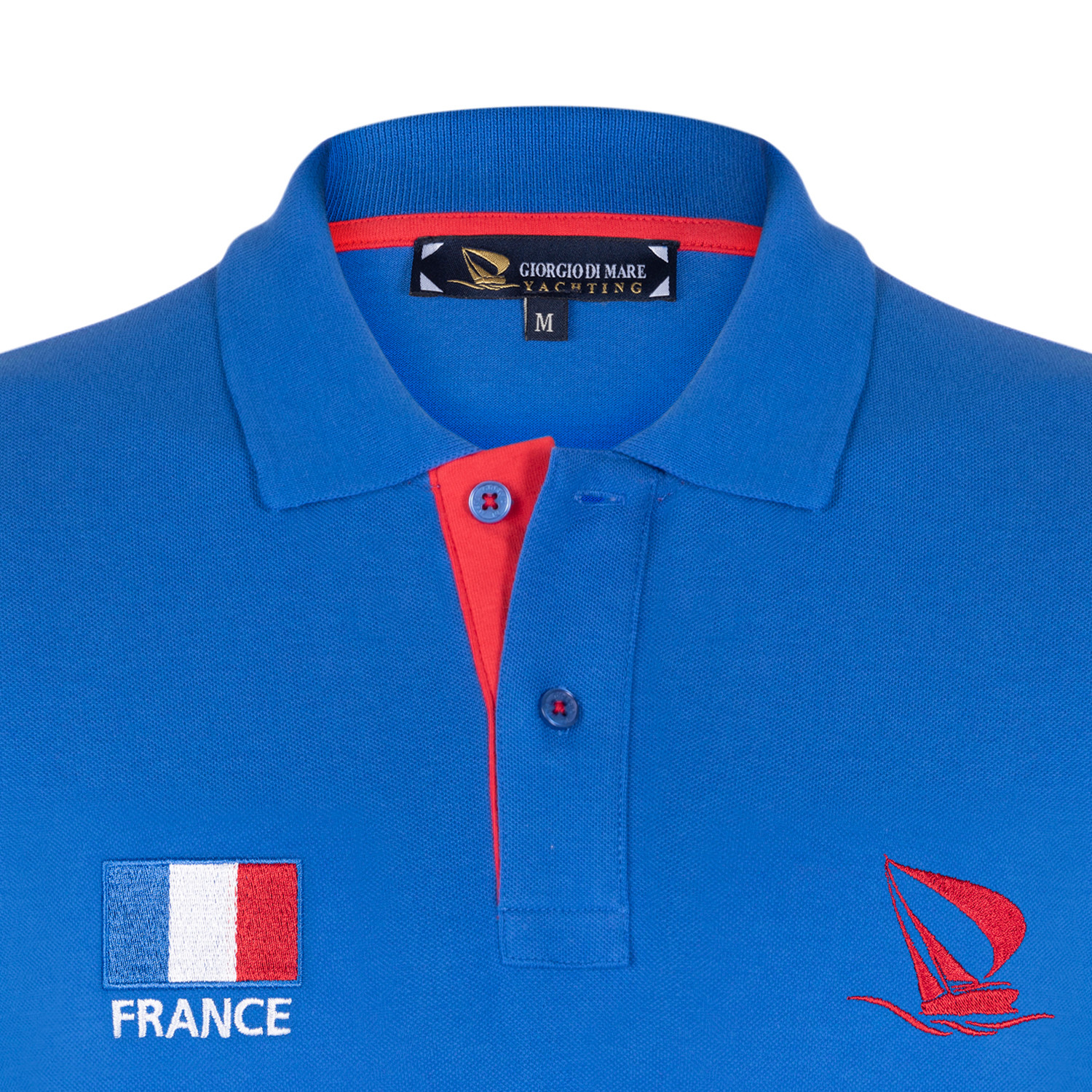 France Flag Embroidered Polo Shirt // Sax