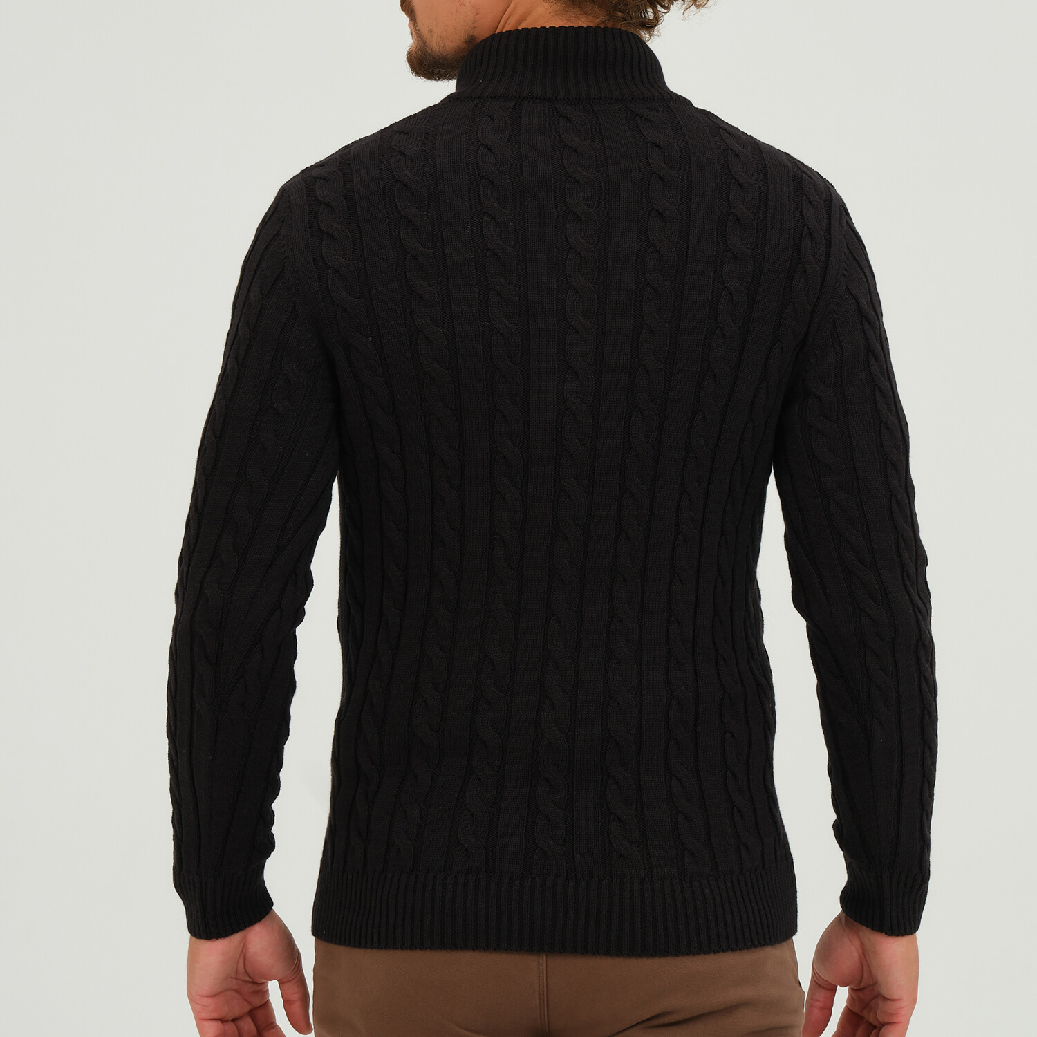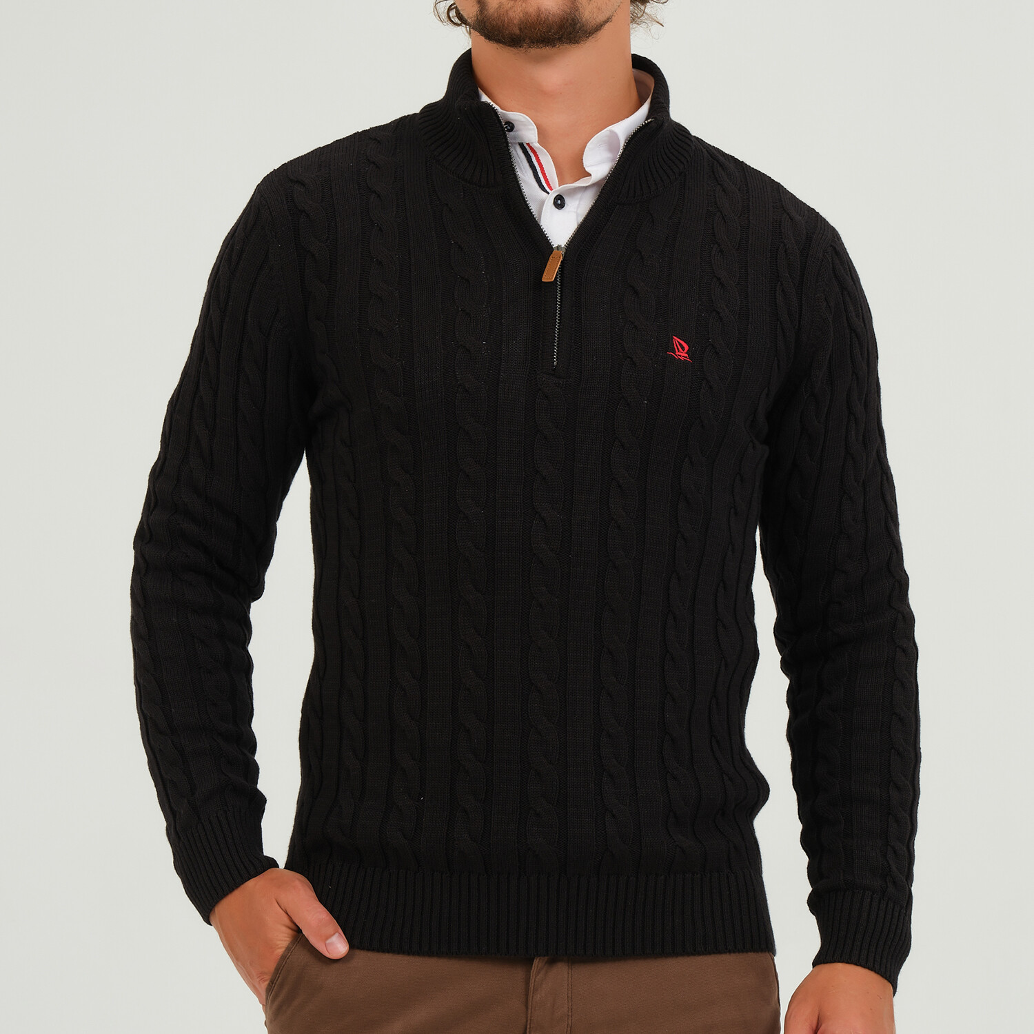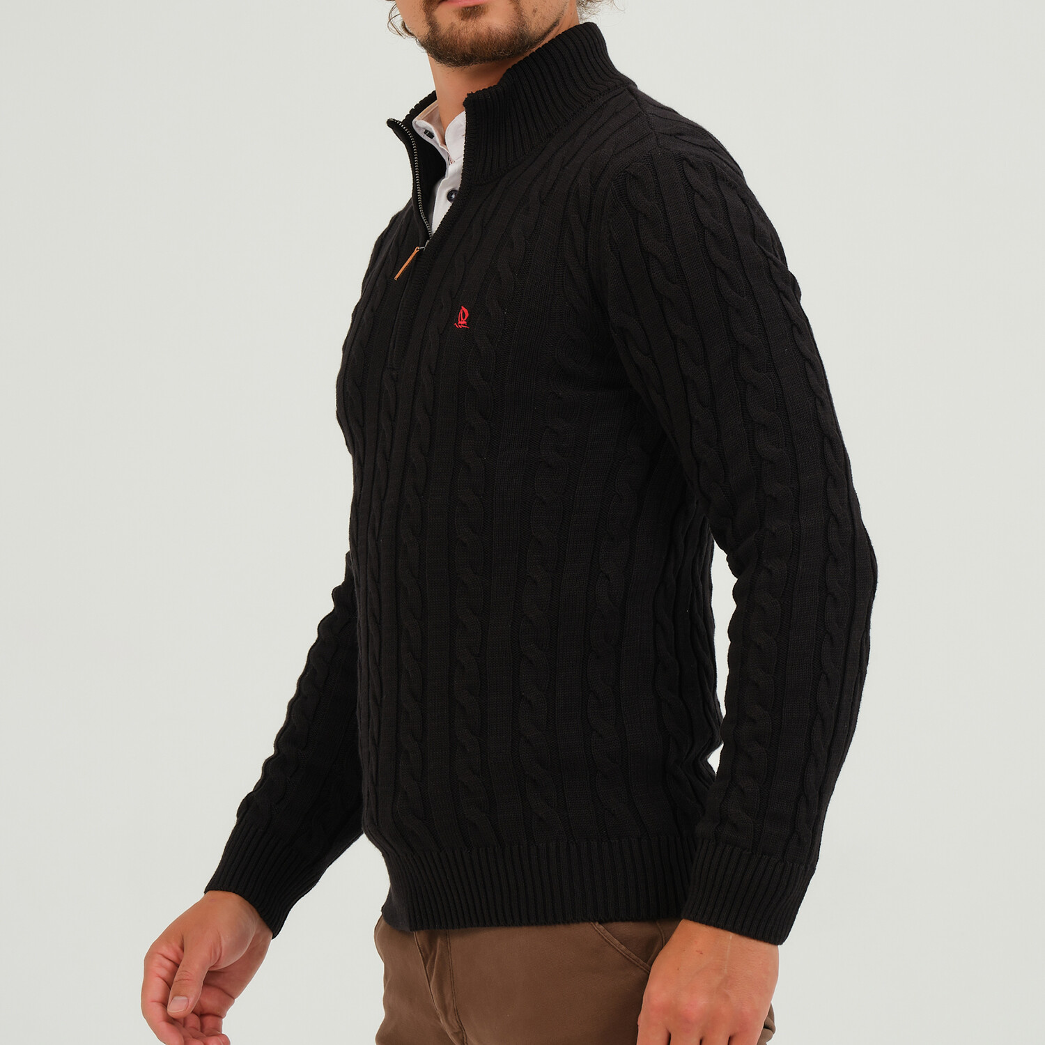 Birdseye Logo Placket 1/4 Zip Sweater // Black
