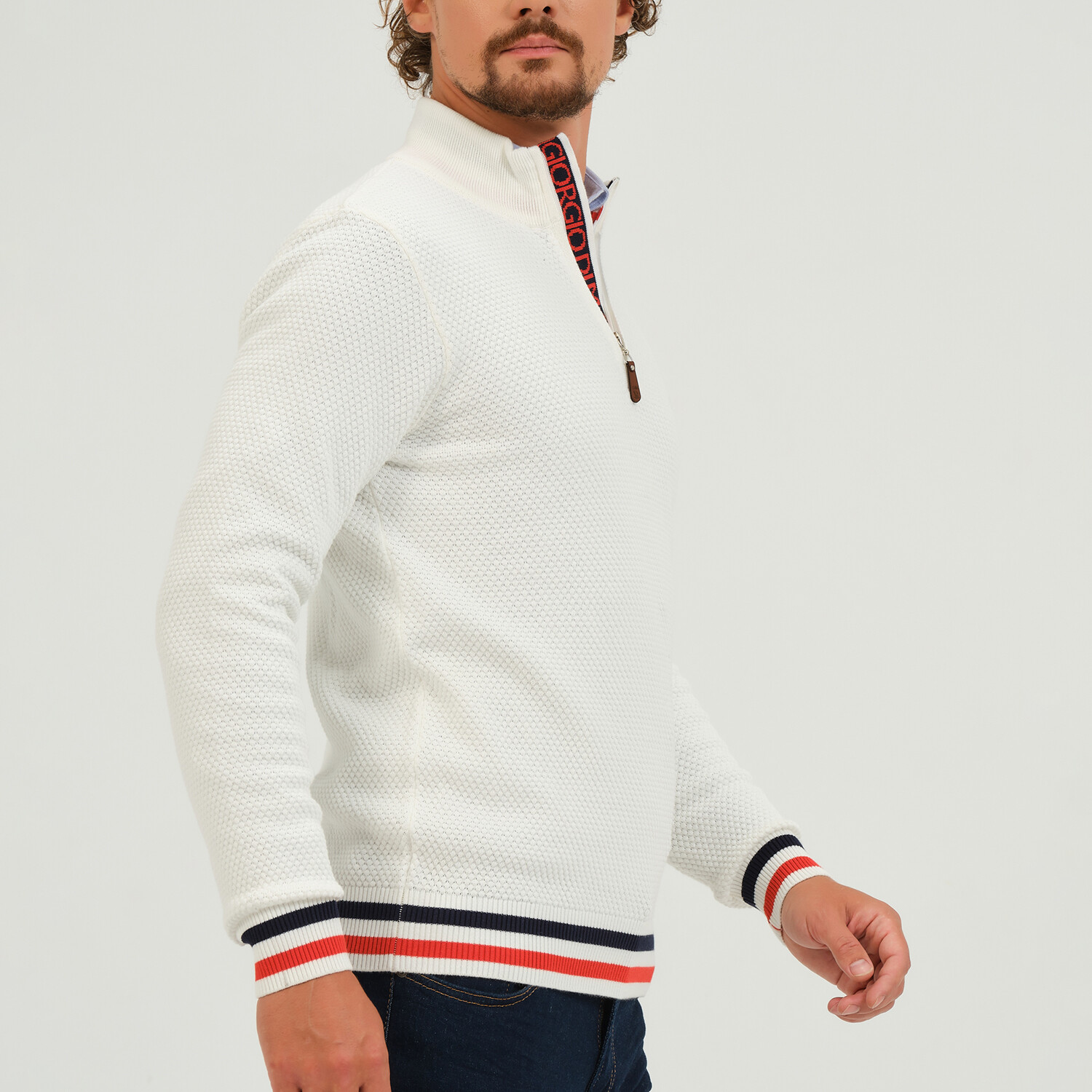 Birdseye Logo Placket 1/4 Zip Sweater // Ecru