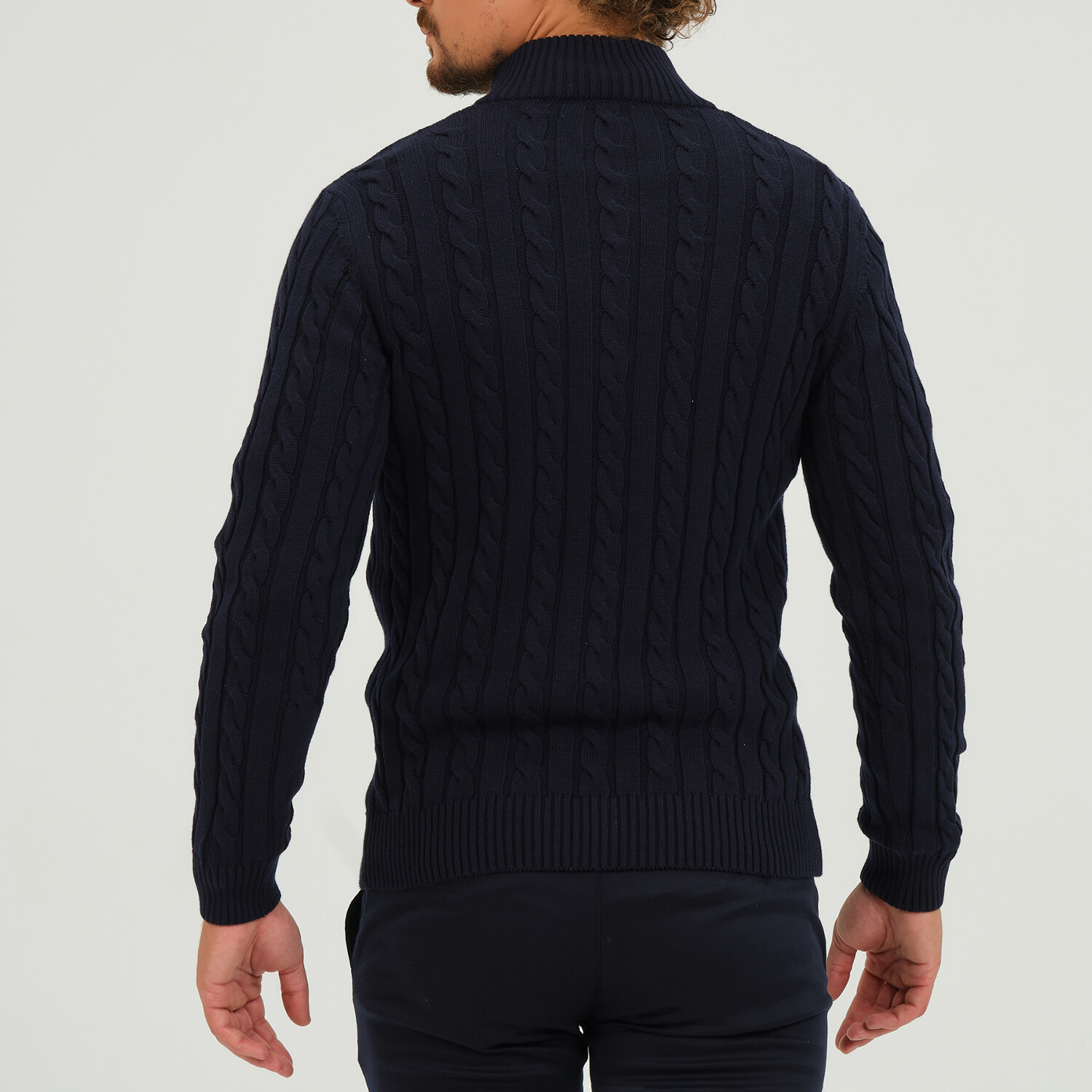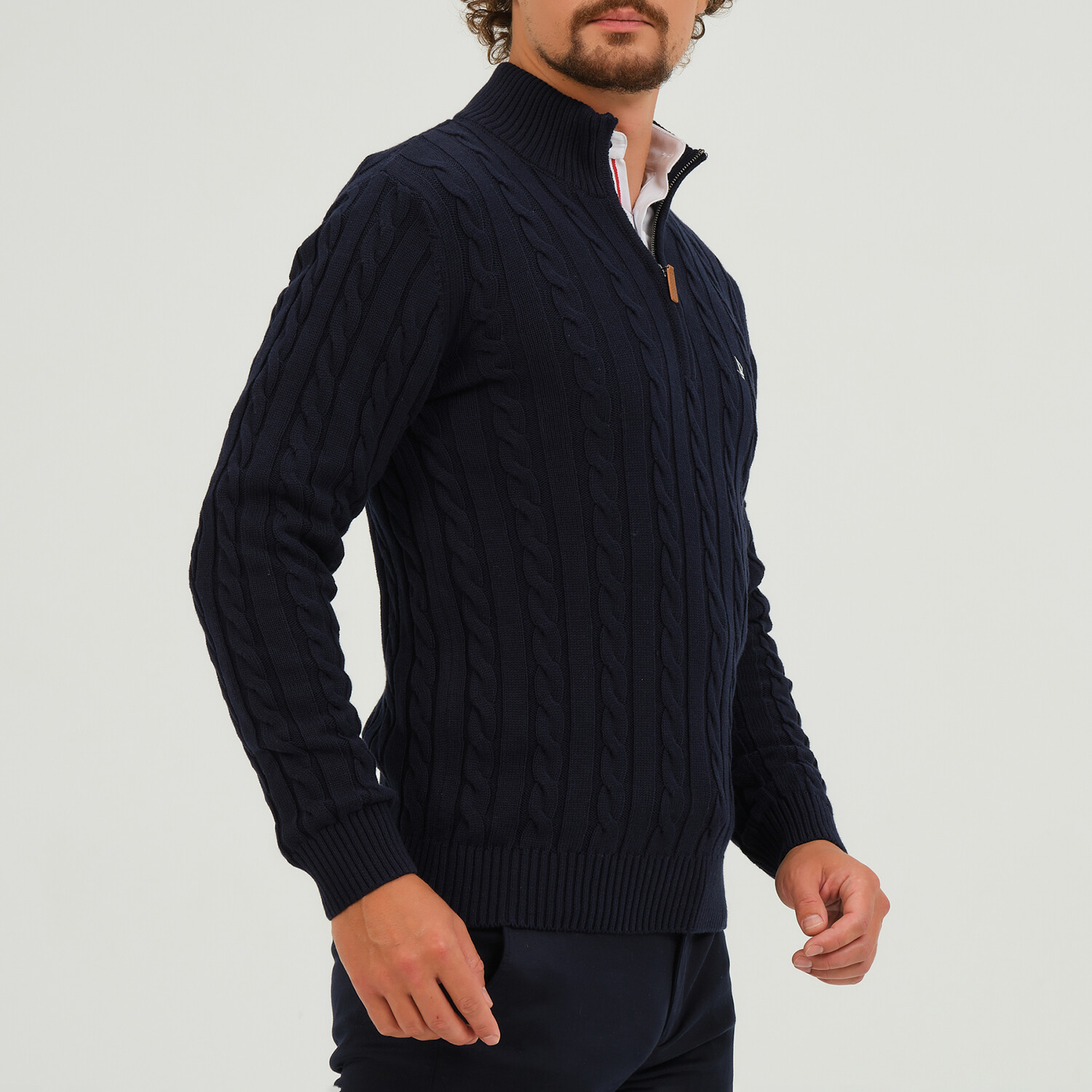 Birdseye Logo Placket 1/4 Zip Sweater // Navy