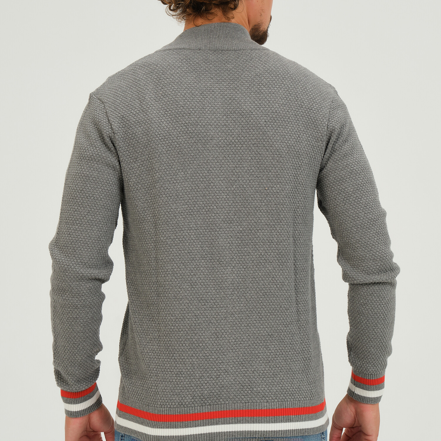 Birdseye Logo Placket Full Zip Sweater // Anthracite