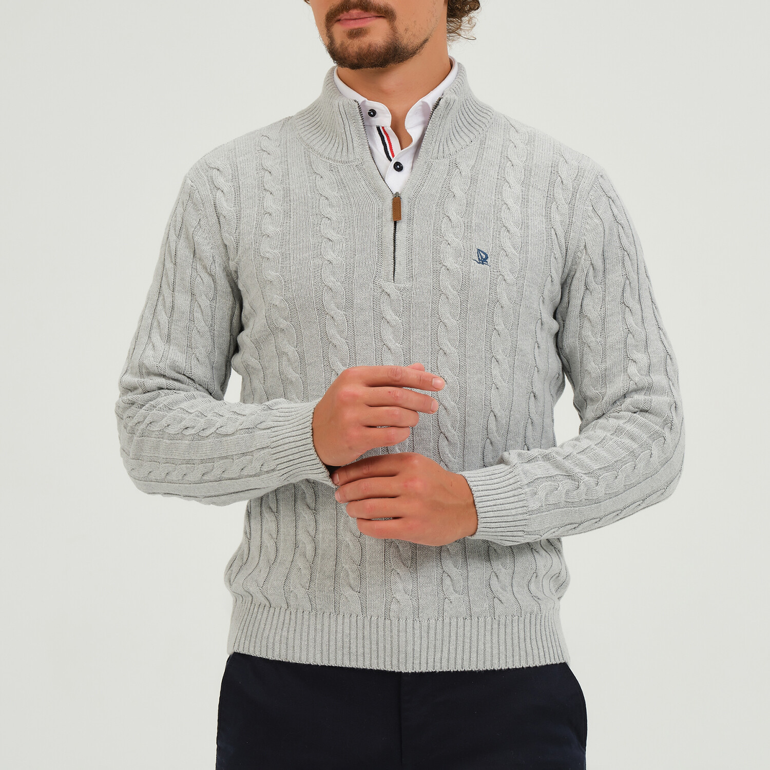 Cable Knit 1/4 Zip Sweater // Light Gray