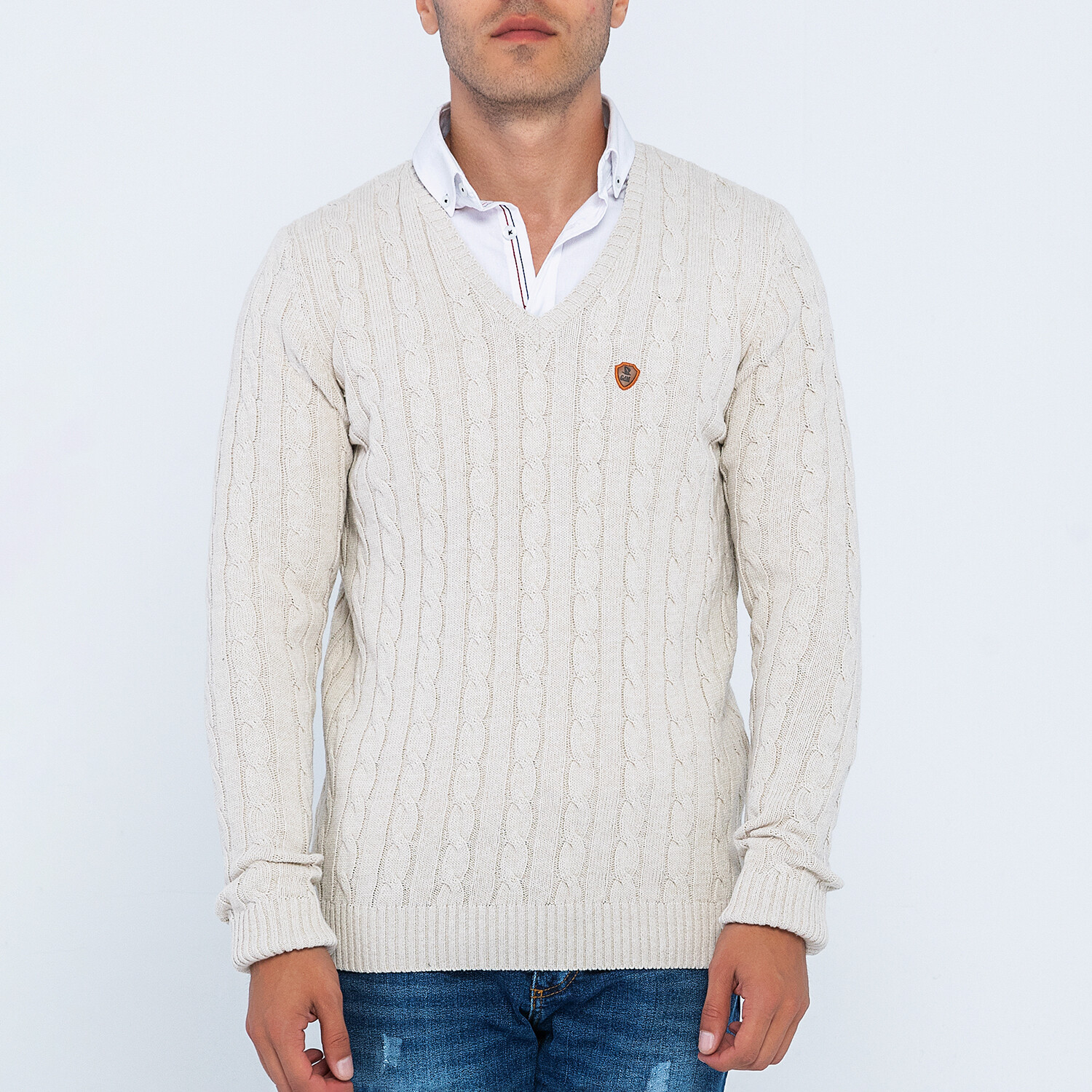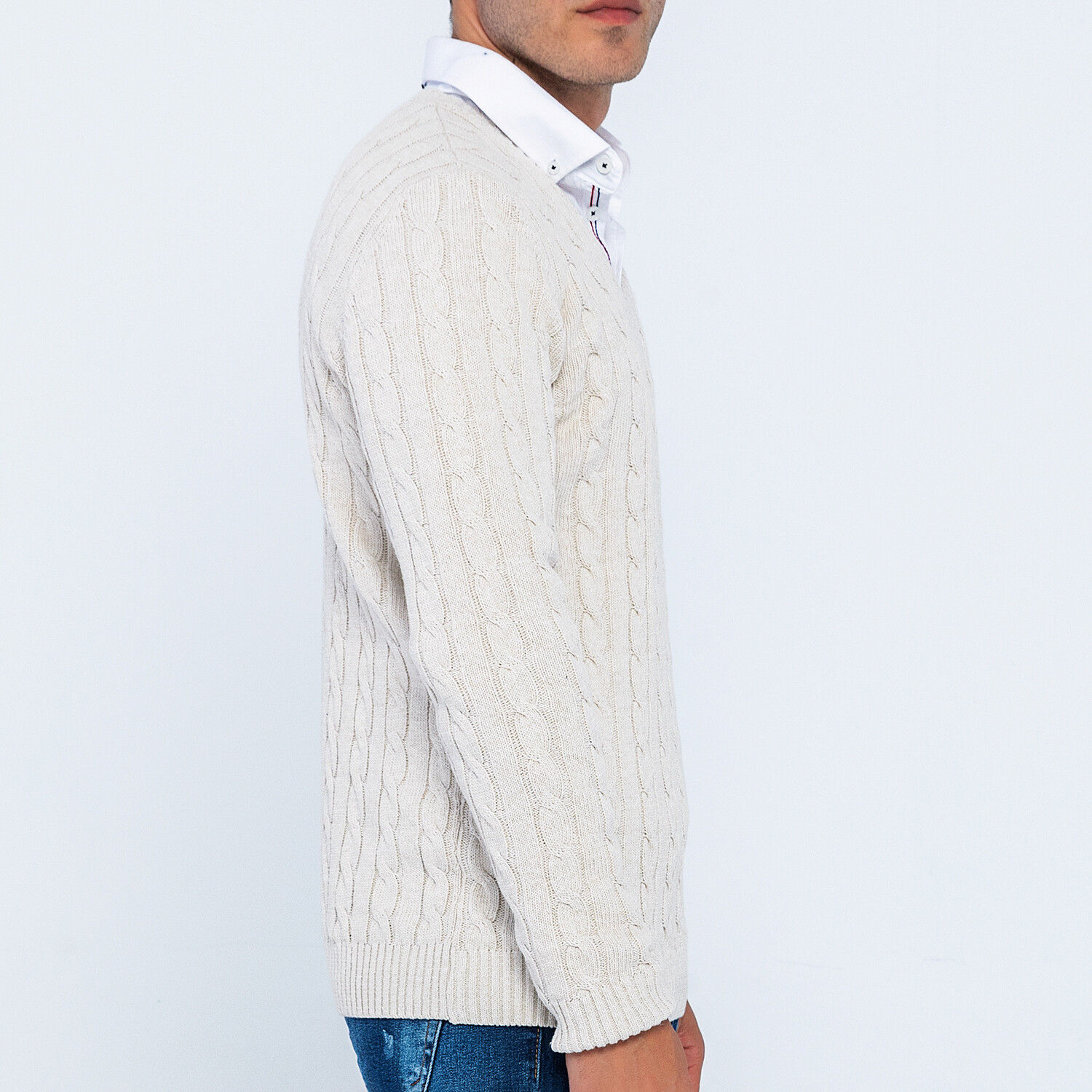 Cable Knit V-Neck Sweater // Linen