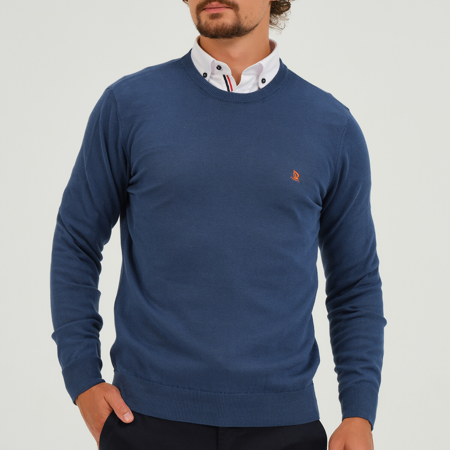 Contrast Logo Crew Neck Sweater // Indigo