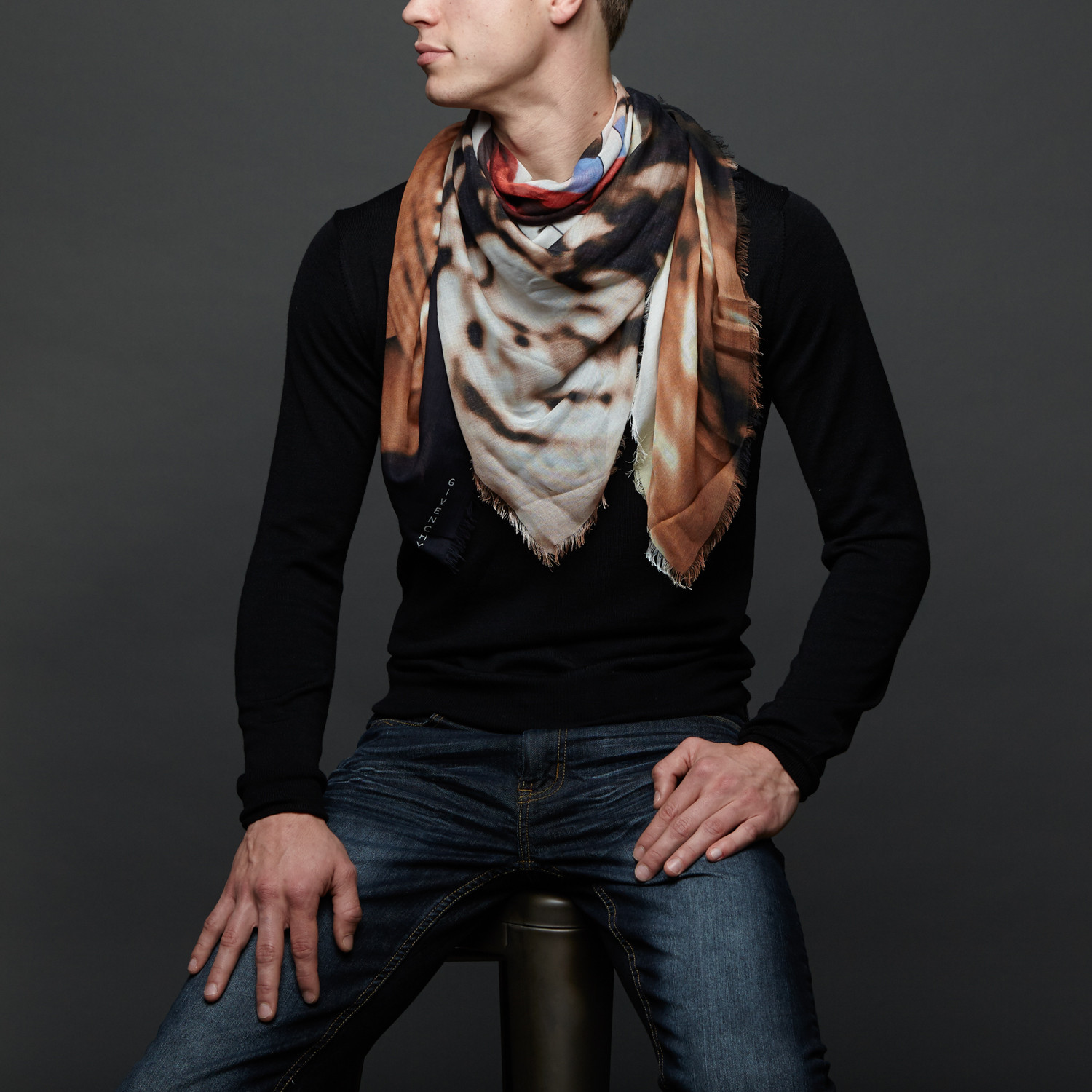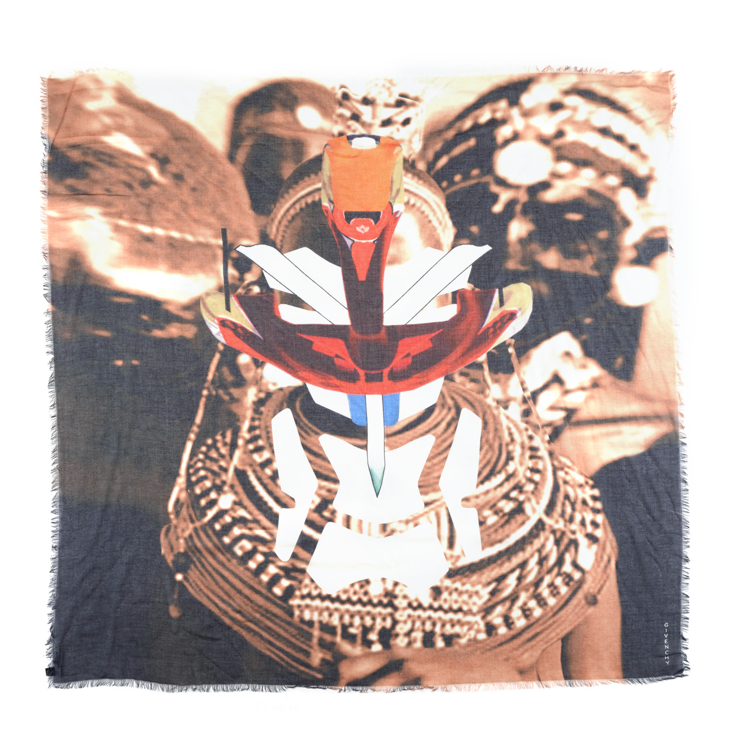 With the animal, spiritual, urban, floral, geometric, and darkly romantic all intersecting into one dizzying line of designs, Tribal Robot I is a perfect representation of Givenchy's fabled aesthetic, updated for a new generation. The couture clashing of new colors and classical prints is a look that Givenchy made luxe in the first place, with each scarf being transformed into a wearable work of art.