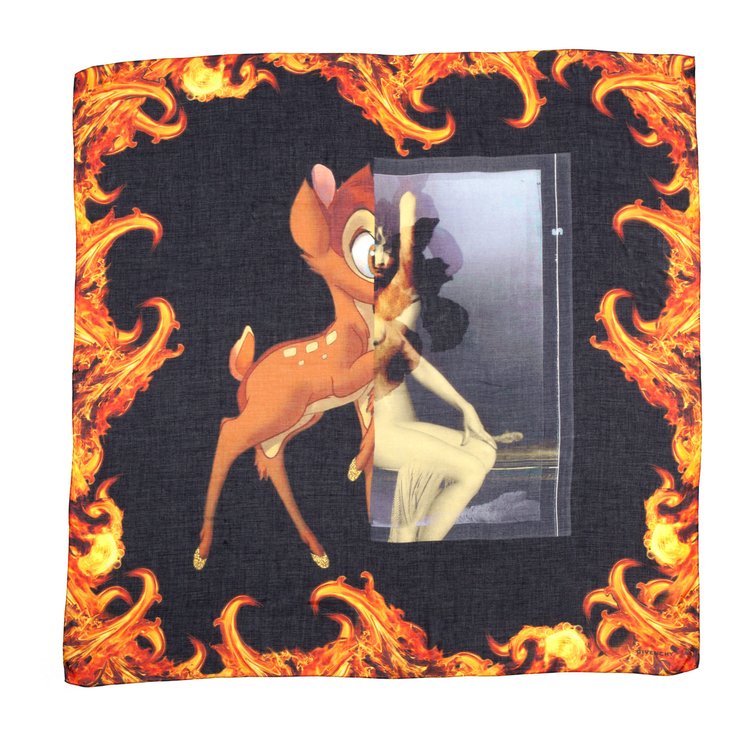 With animal, spiritual, urban, floral, geometric, and the darkly romantic all intersecting into one dizzying line of designs, Bambi and Flames is a perfect representation of Givenchy's fabled aesthetic, updated for a new generation. The couture clashing of new colors and classical prints is a look that Givenchy made luxe in the first place, with each scarf being transformed into a wearable work of art.