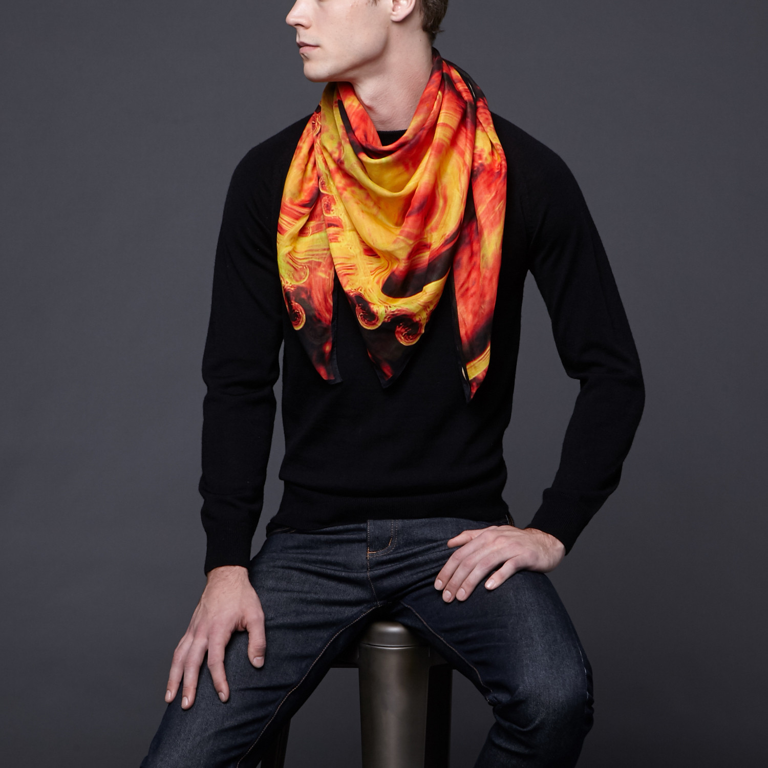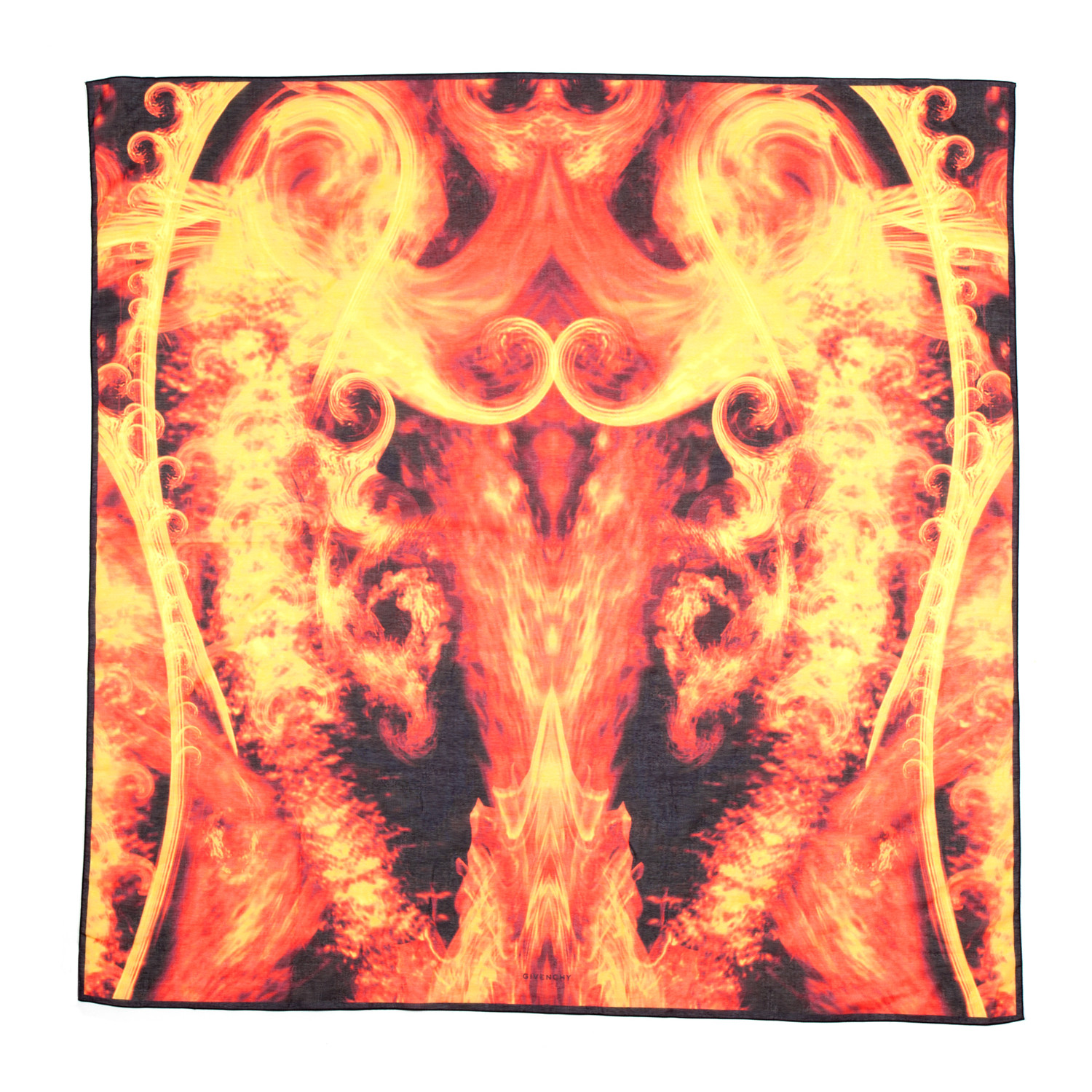 With animal, spiritual, urban, floral, geometric, and the darkly romantic all intersecting into one dizzying line of designs, Flame is a perfect representation of Givenchy's fabled aesthetic, updated for a new generation. The couture clashing of new colors and classical prints is a look that Givenchy made luxe in the first place, with each scarf being transformed into a wearable work of art.
