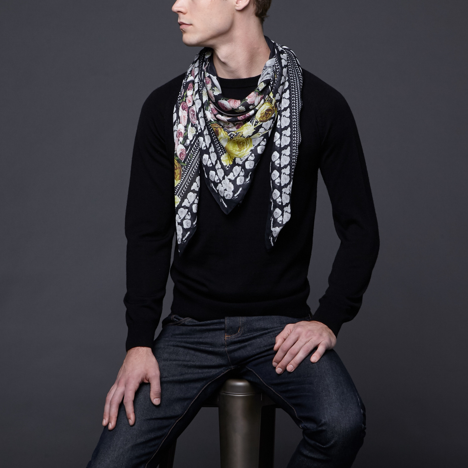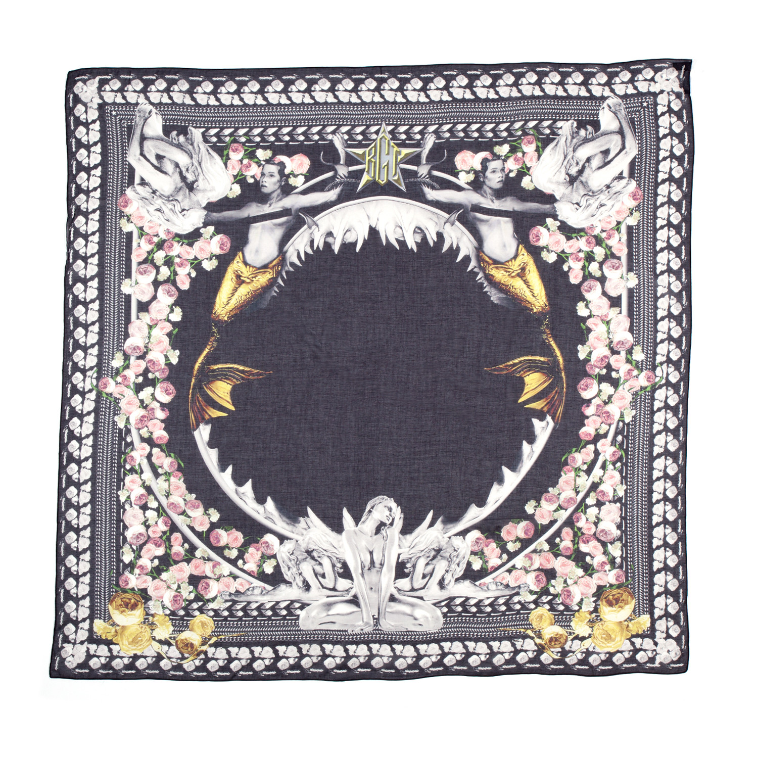 With animal, spiritual, urban, floral, geometric, and the darkly romantic all intersecting into one dizzying line of designs, Mermaid is a perfect representation of Givenchy's fabled aesthetic, updated for a new generation. The couture clashing of new colors and classical prints is a look that Givenchy made luxe in the first place, with each scarf being transformed into a wearable work of art.