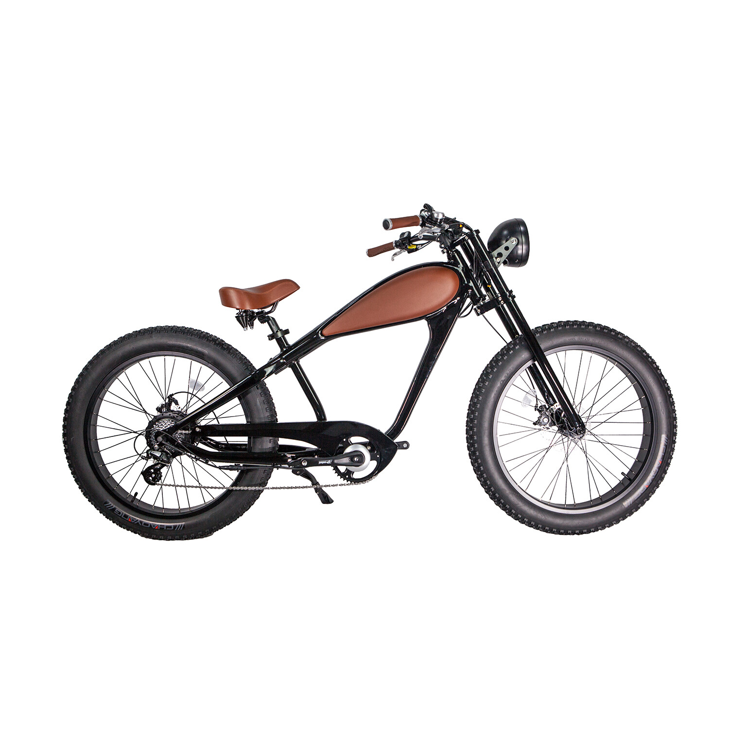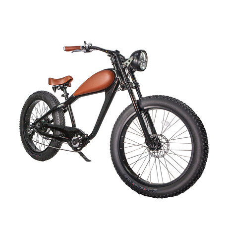 Vintage aesthetics meet modern functionality with our electric bike, reminiscent of 70s café racer style. The standard LED headlight, featuring high and low beam options along with a day-light indicator, exudes a classic charm. The 28MPH top speed, powered by the Bangfang 750W motor and Shimano 7-speed gear, offers versatile riding. Tektro brakes ensure safety, while fat tire design ensures ease across various terrains.