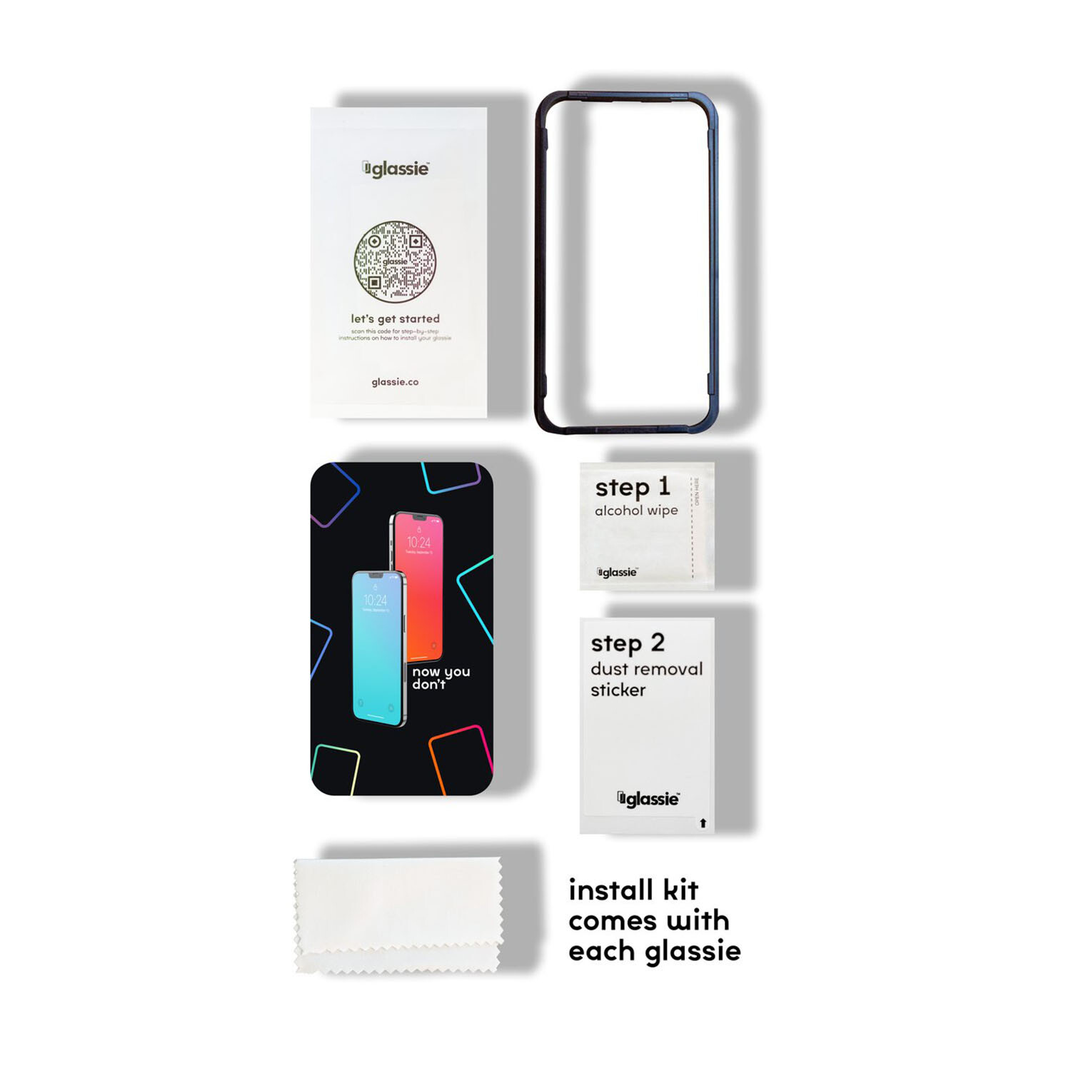 Protect your most valuable possession with Glassie. The antimicrobial screen protector is designed to prevent any potential damages while displaying a personalized design on the screen. Whether it's a daily affirmation or breath of fresh air, each subtle design only appears when the screen if off and disappears when the the screen is turned back on.