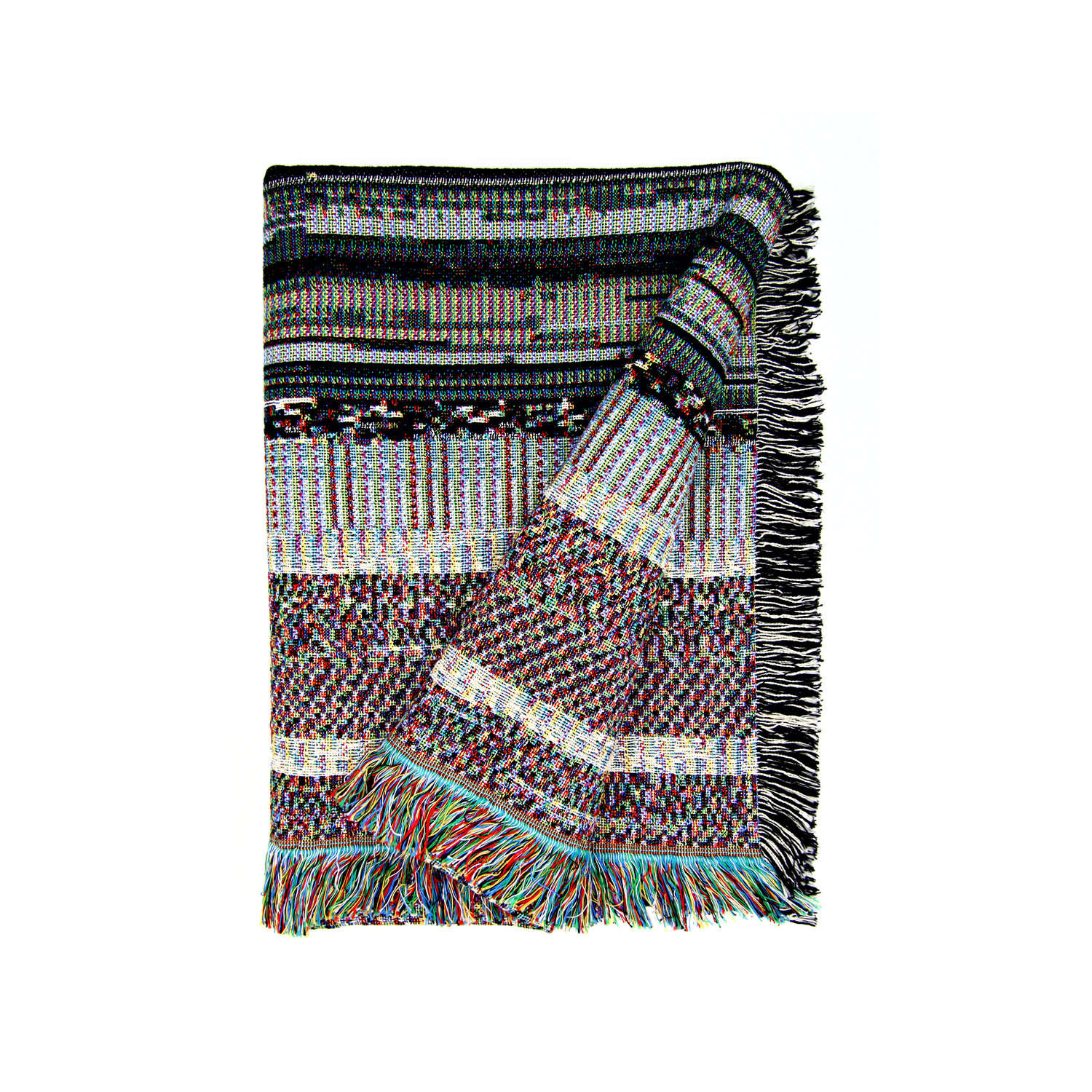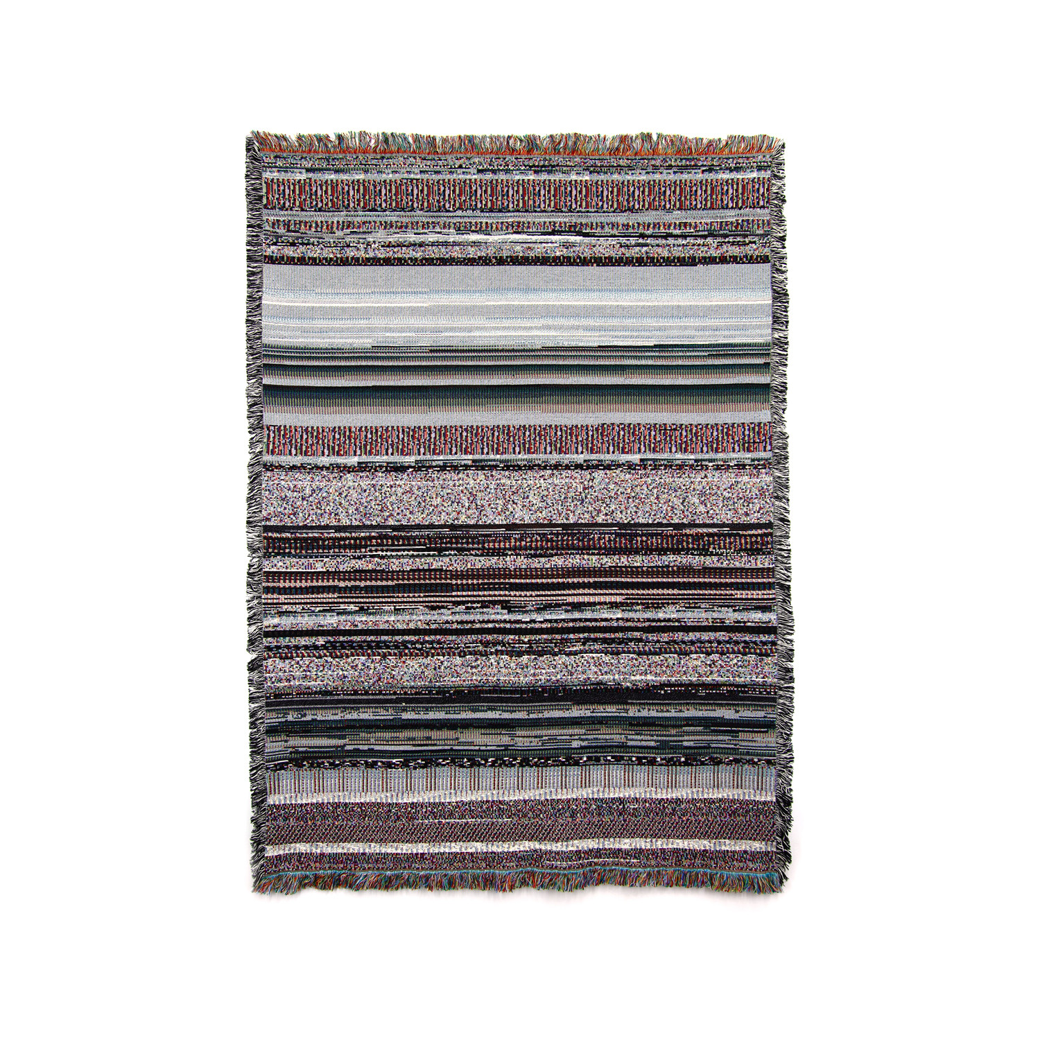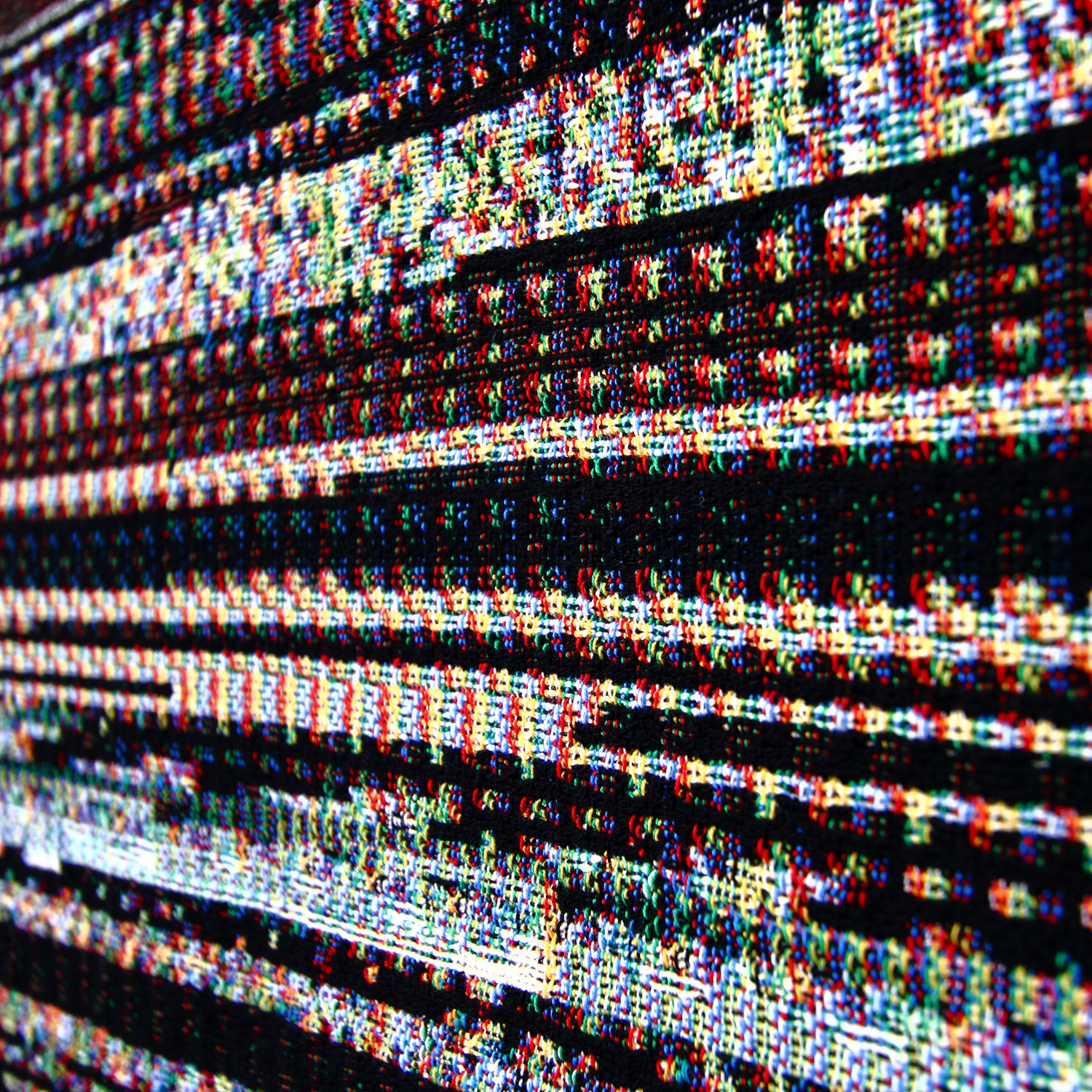 The DYLD Binary No. 12 throw features a custom design by Phillip Stearns that is made by visualizing raw binary data from a critical Mac OSX system file. The result is a triumphant combination of real life textiles and artwork of the more digital variety.