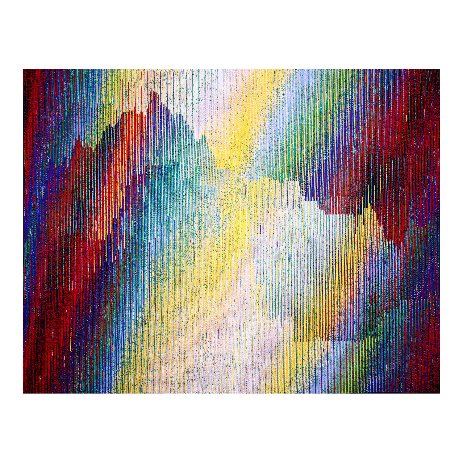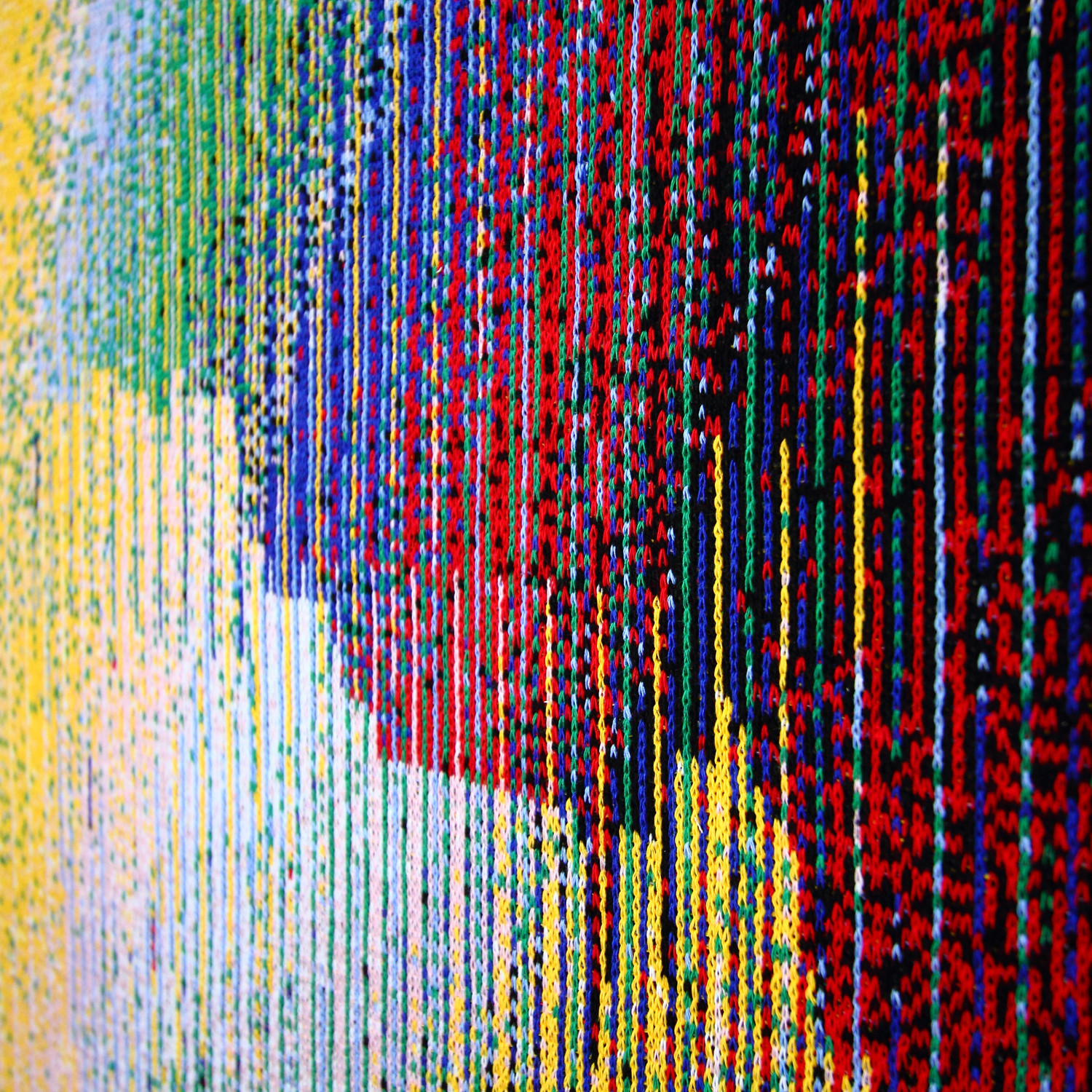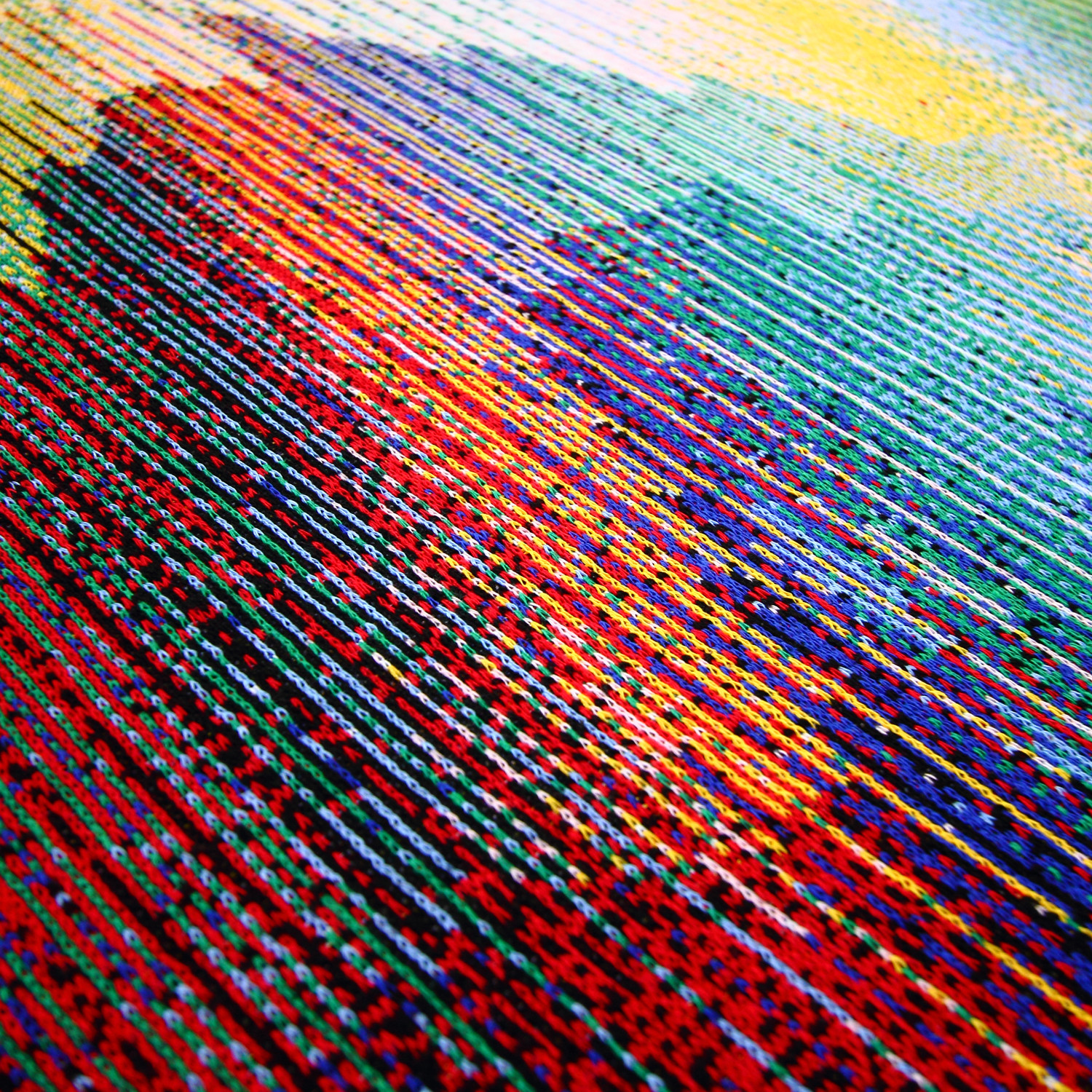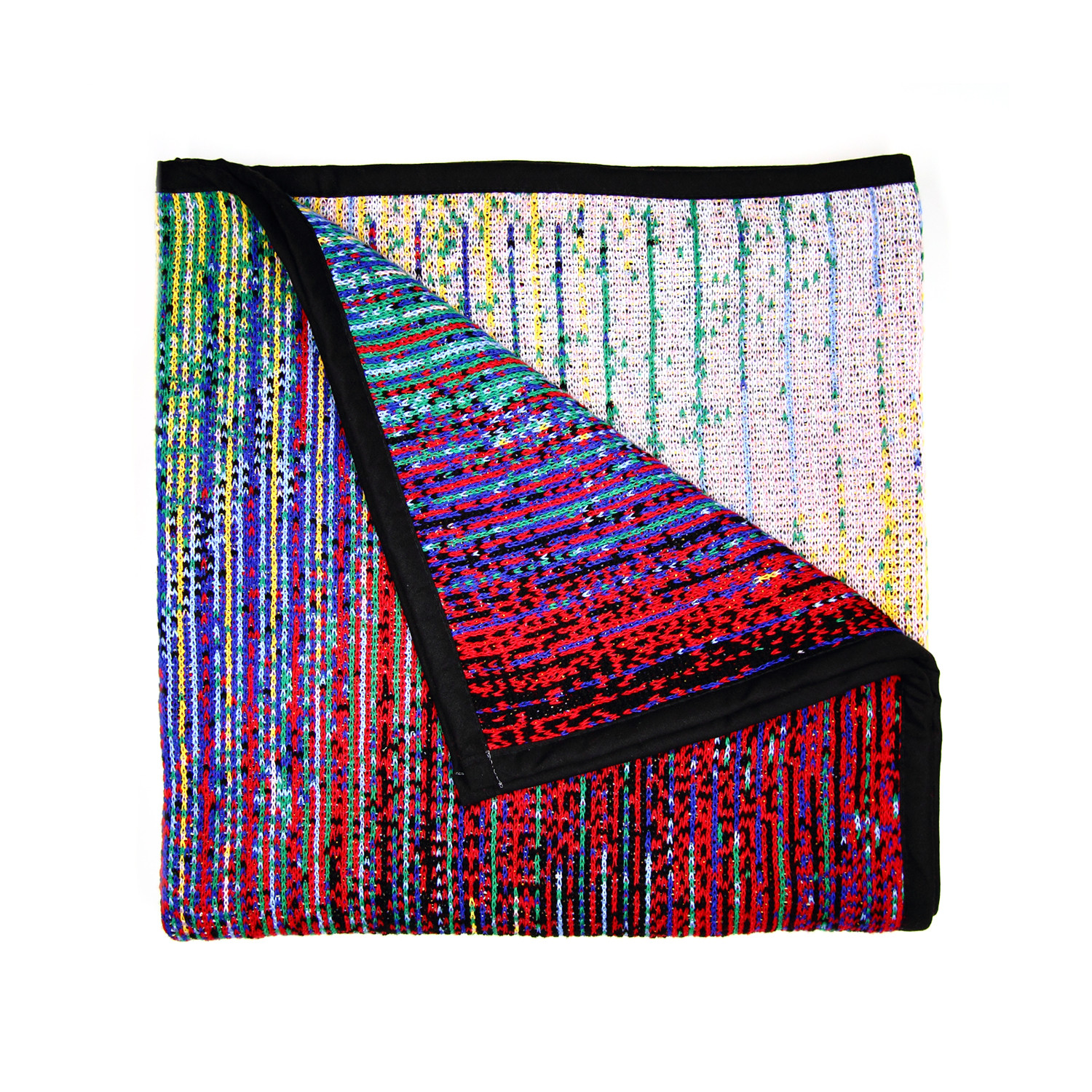 The Gradient No. 088 knit is 100% cotton and patterned from images made by corrupting the data of a GIF encoded gradient. Wrap yourself in a visual representation of digital materiality with this open-edition, made to order knit throw.