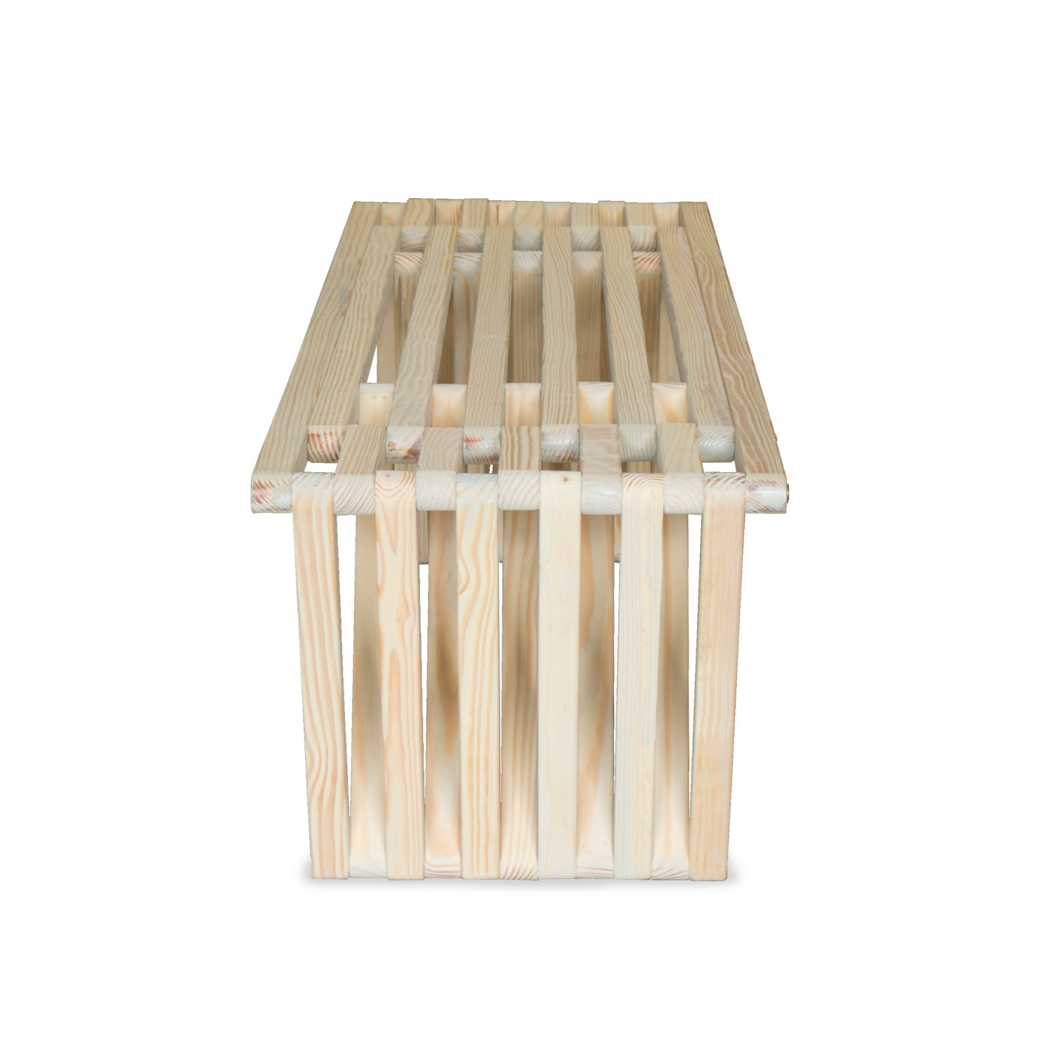 This bench is practical, durable, eco-friendly and was handmade in the USA. Conceptualized by Brazilian designer Ignacio Santos, it is crafted from durable wood and stainless steel, and built to last for years. Natural knots in the wood add a realistic rustic feeling to the simple design, which continues to get more beautiful with age. This multi-tasker is perfect outdoors, on a porch or patio and inside entryways.