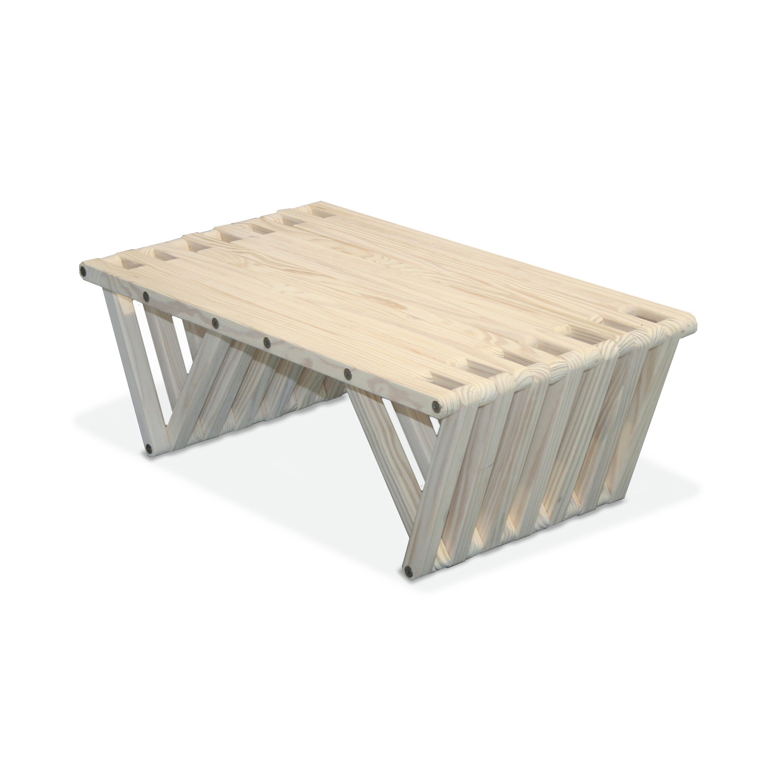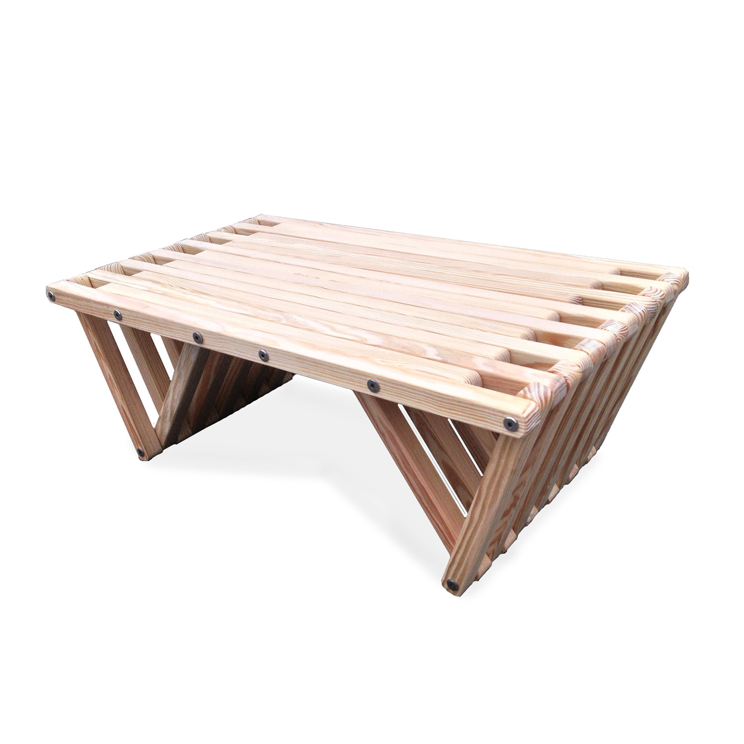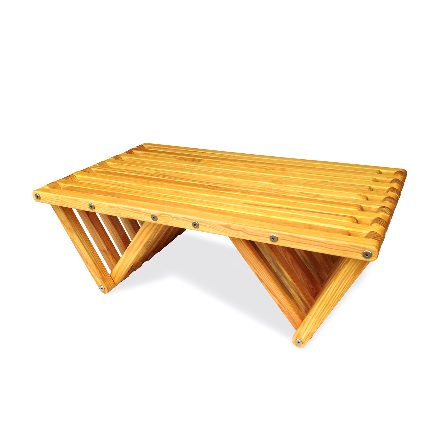 This coffee table is practical, durable, eco-friendly and was handmade in the USA. Conceptualized by Brazilian designer Ignacio Santos, it is crafted from durable wood and stainless steel, and built to last for years. Natural knots in the wood add a realistic rustic feeling to the simple design, which continues to get more beautiful with age. This simply designed coffee table makes a great outdoor centerpiece or rustic indoor coffee table for informal interiors.