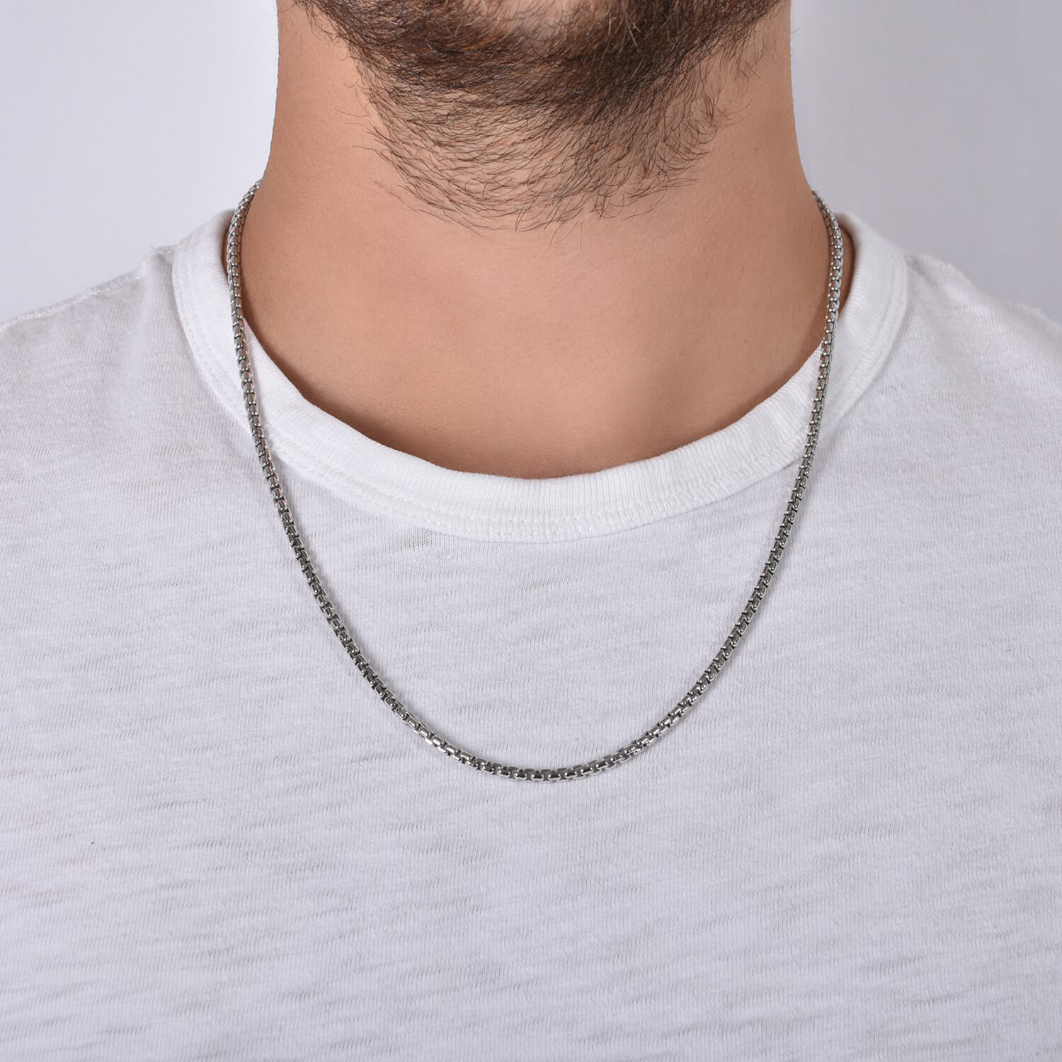 Genuine Rhodium + Solid Sterling Silver Round Box Link Heavy-Duty Chain Necklace // 3mm