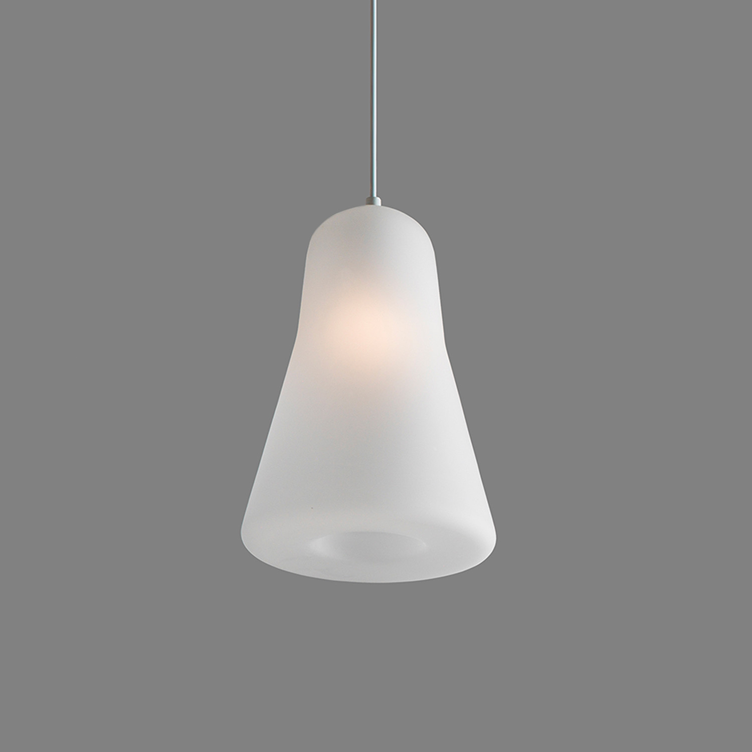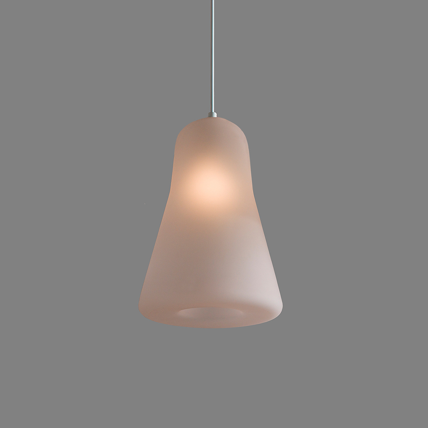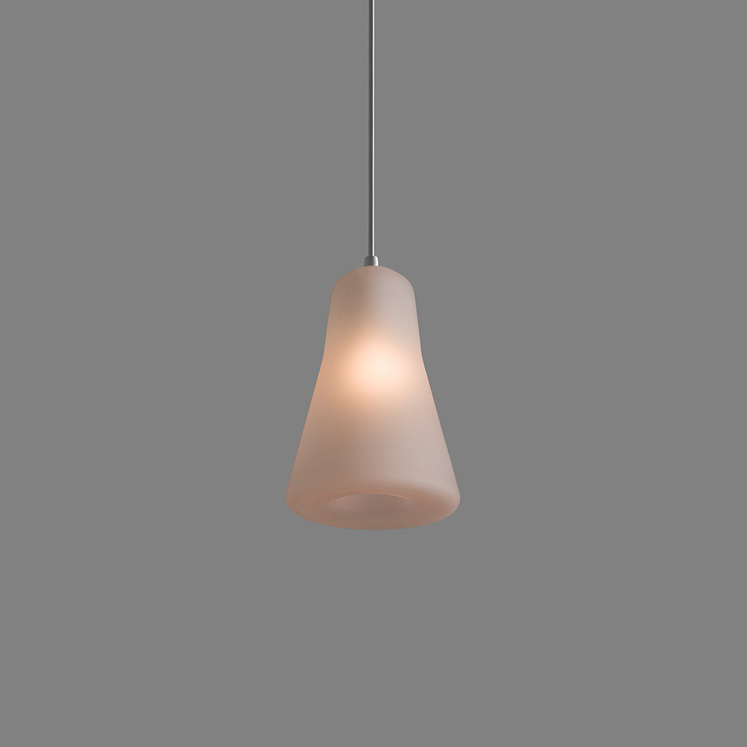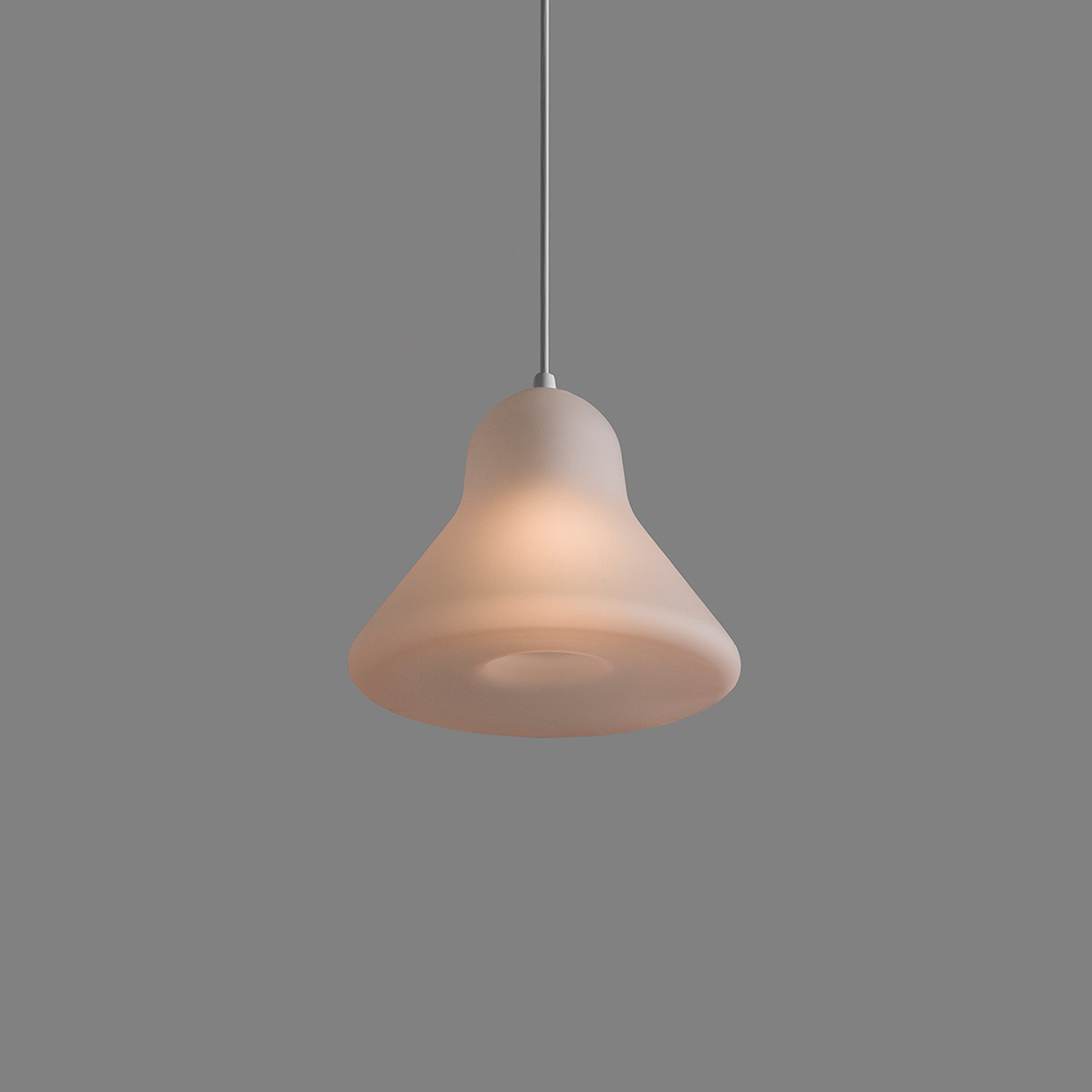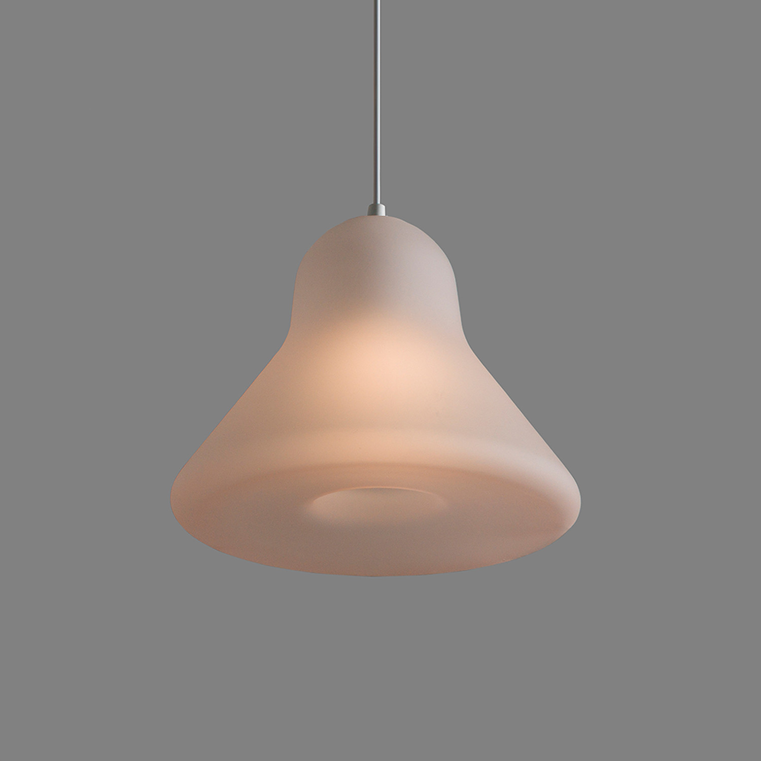 The Cabin Pendant takes its name from the cabin of a space shuttle, to which it owes its geometric form. Diffuse light emanates from the frosted body of the lamp, while the opening on the bottom casts a focused beam.