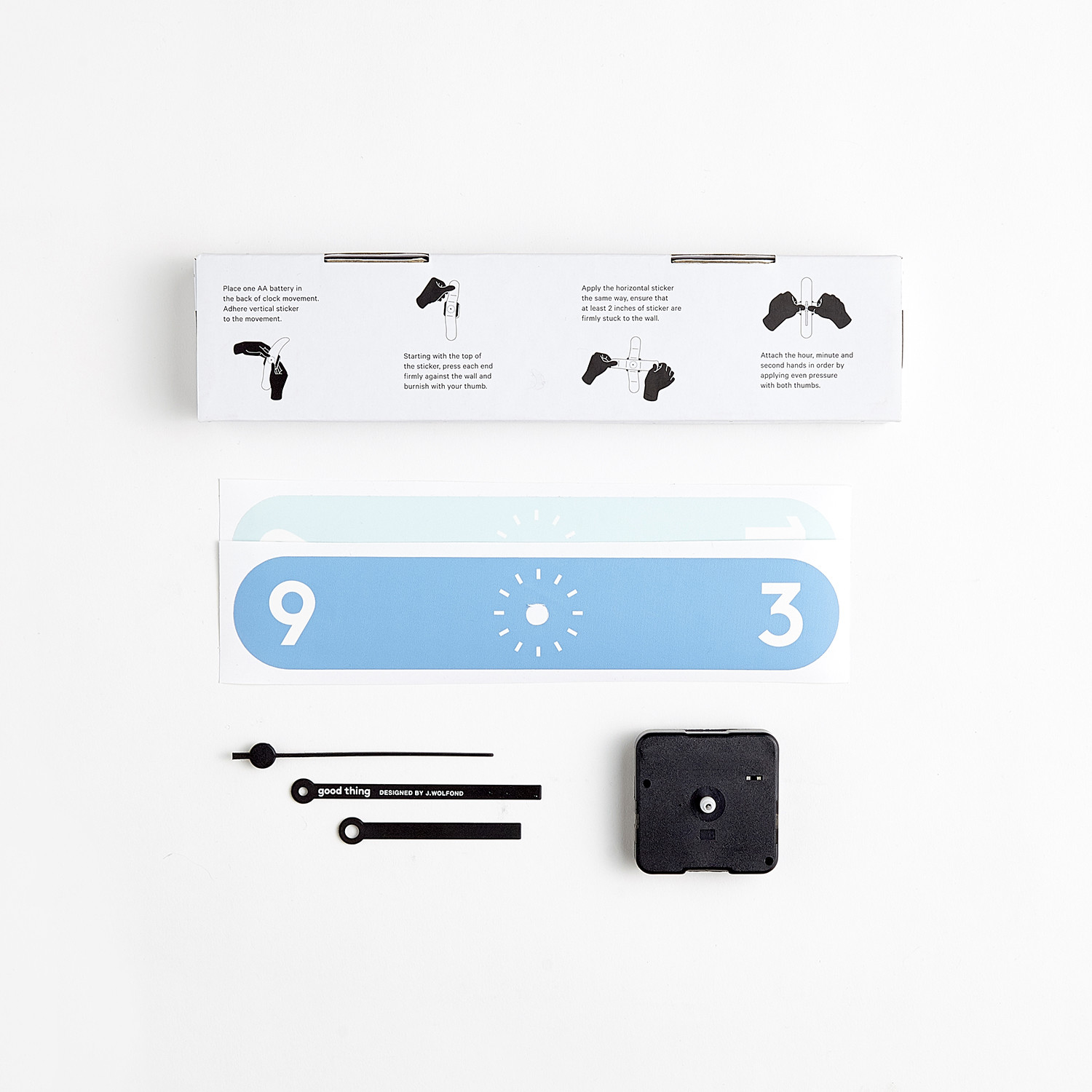 Comprised of only two fabric strips and standard clock parts, the Sticker Clock reduces time to its most basic elements. It's non-damaging to painted walls and can be reapplied up to 200 times, so you can perfectly customize and personalize it to match any room in your home, no matter how often you update your decor.