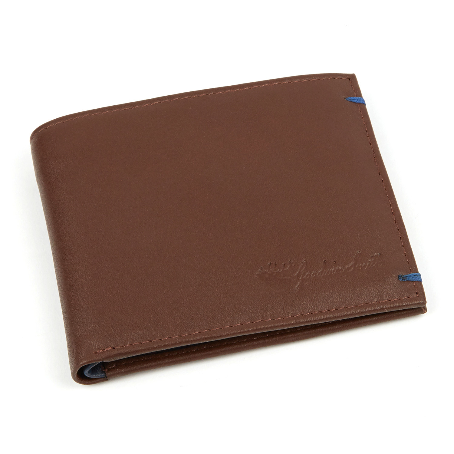 The Pat Bi-Fold Wallet features premium quality leather throughout, with a folding design and embossed logo. The lining features a bold, repeating print of Goodwin Smith's iconic stag.