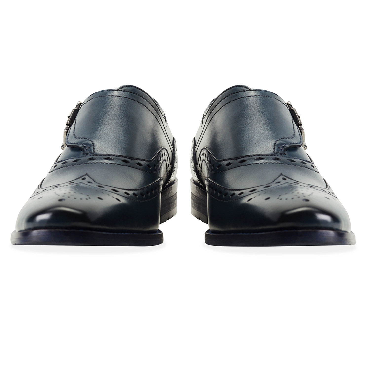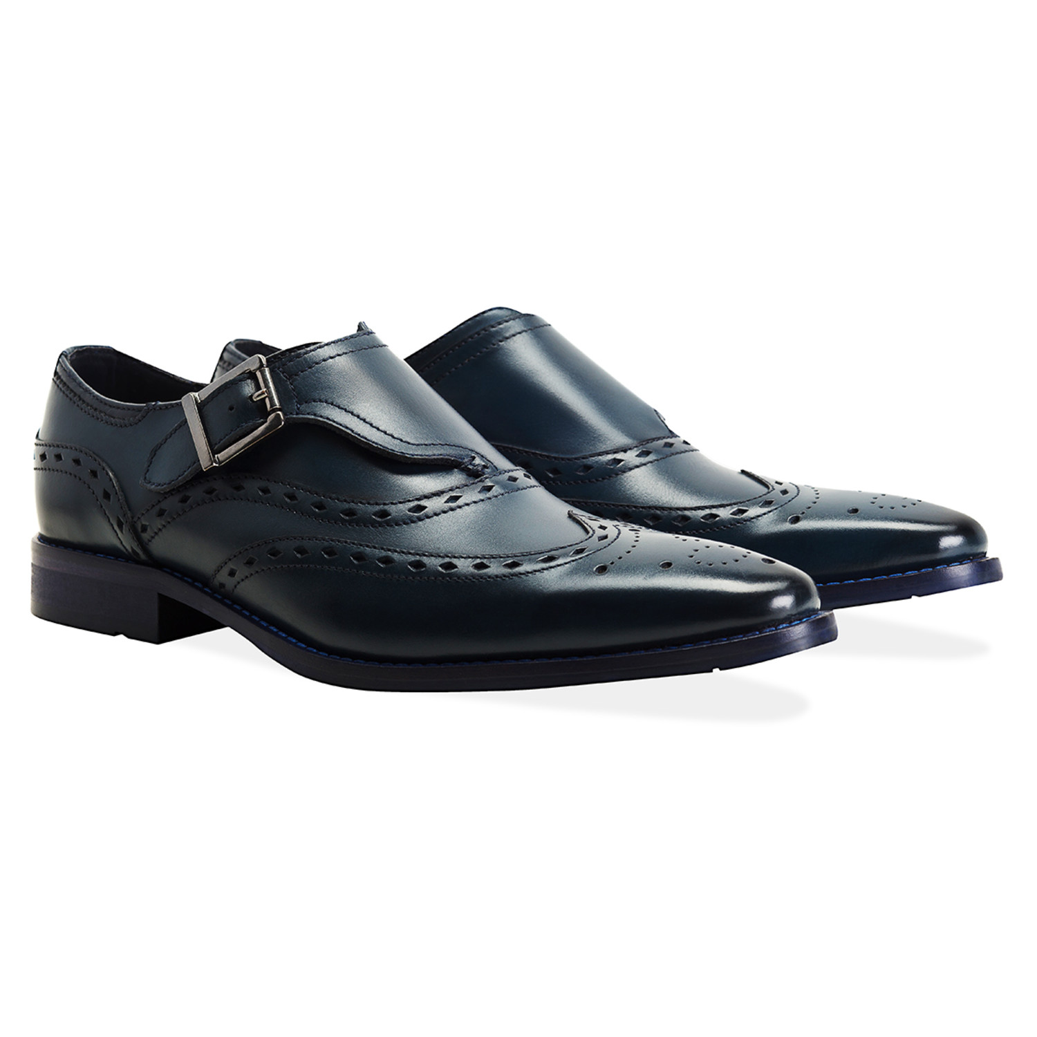 Single monk strap shoe. Diamond brogue detail on pointy toe. Hand burnished premium leather upper. New leather and TPR sole unit, anti slip TRP forepart and heel featuring Goodwin Smith branding. GS stag head logo branding to heel tab. Leather and textile lining. Leather sock gold embossed logo and extra padding for increased comfort.