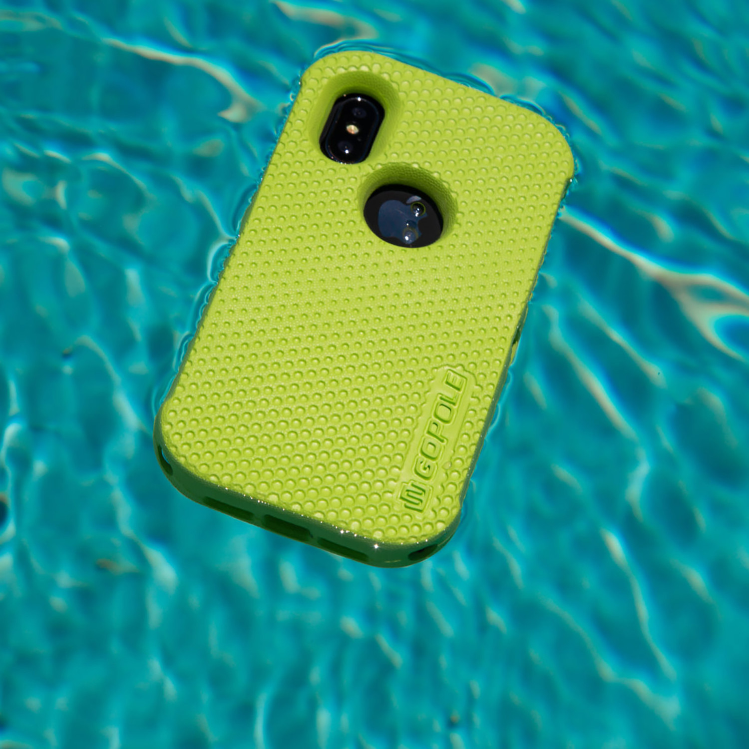 Float your phone with Bobber Case, a life jacket case for iPhone X. Perfect for the beach, pool or boat, it's designed to save your phone if dropped in water, and doubles as a mountable case that attaches to most GoPro® mounts.