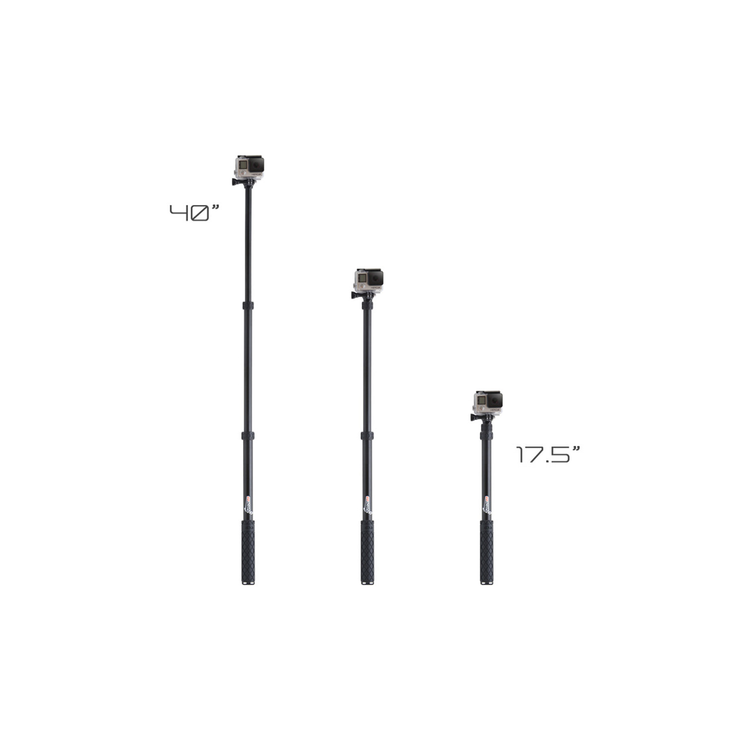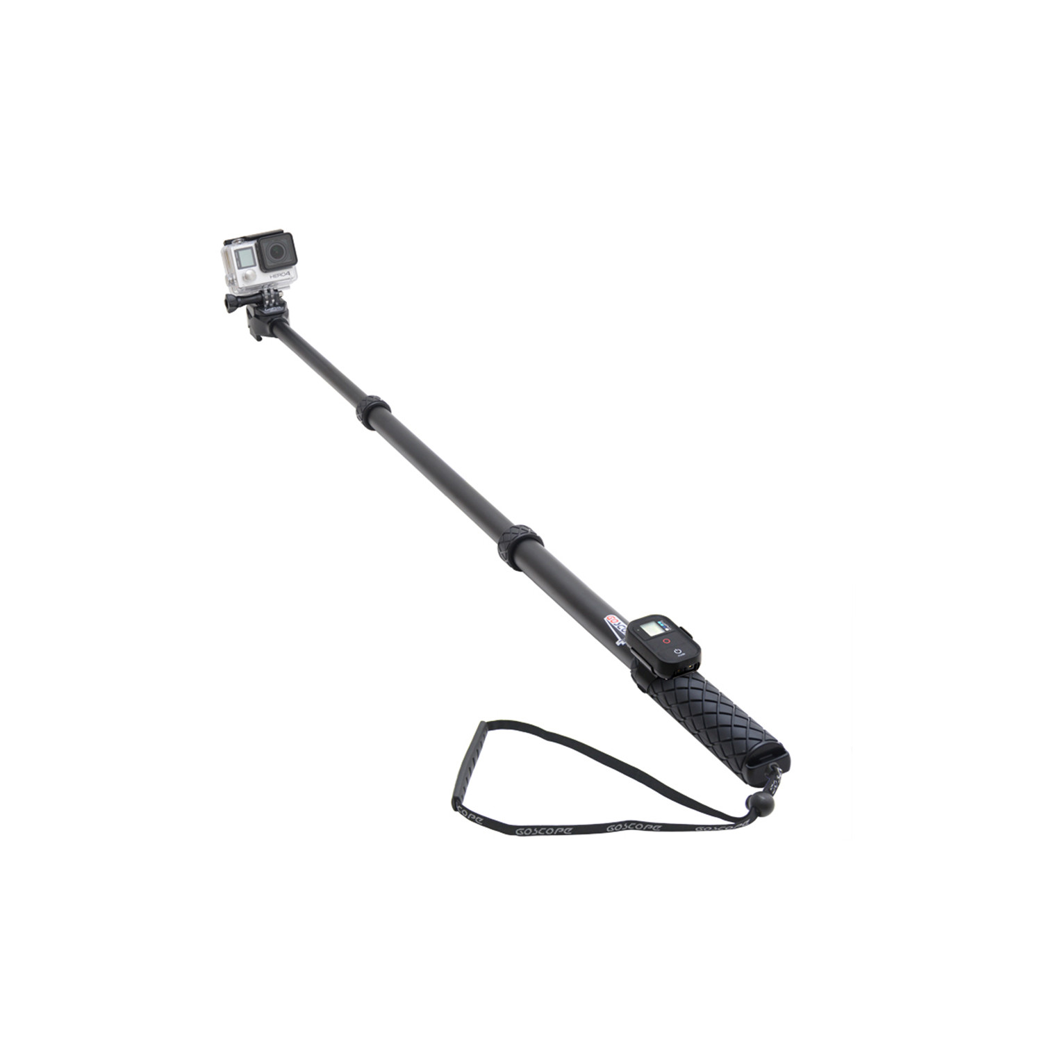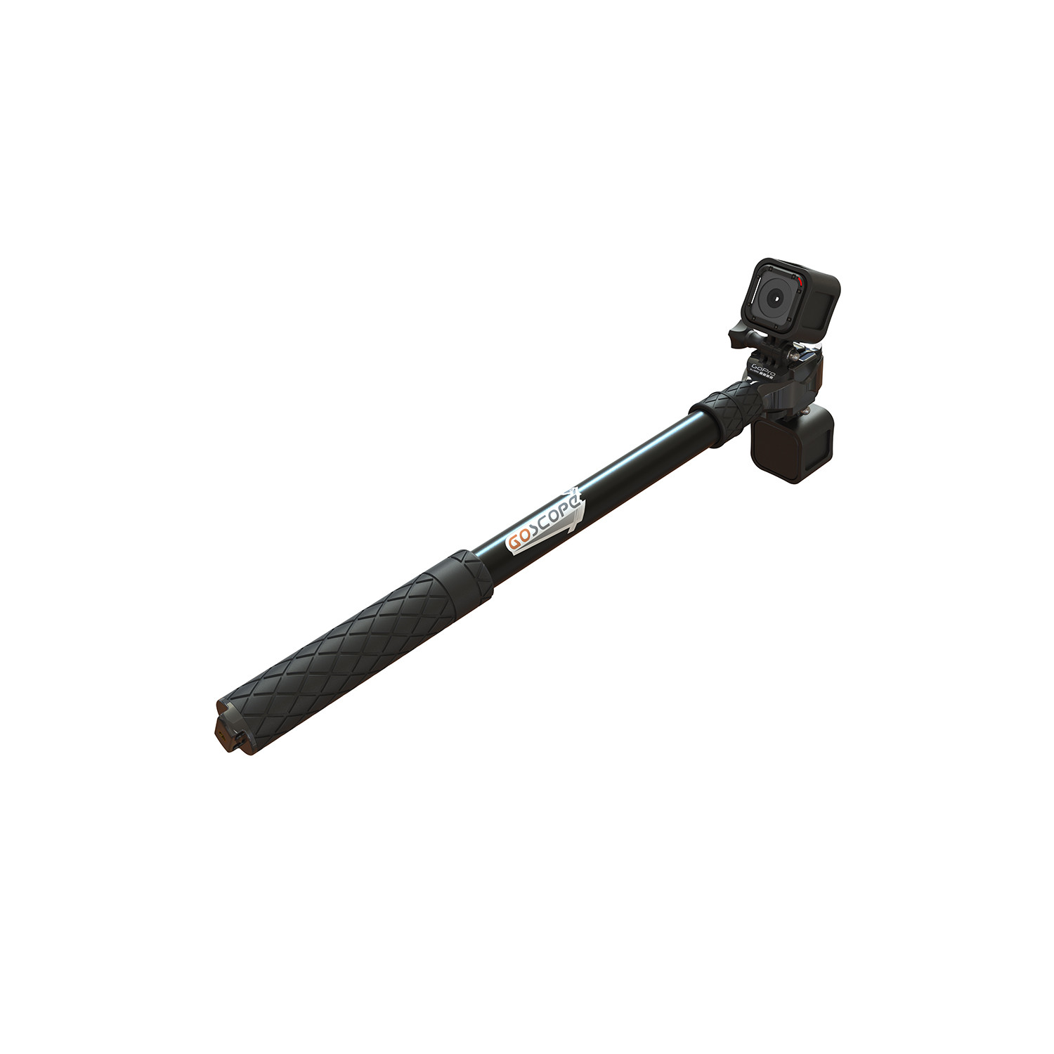 The GoScope Boost Plus is a rugged telescoping pole for GoPro Hero Cameras. It features an integrated quick buckle, a sure grip handle, a remote clip, a removable wrist strap, and Scope-Lock technology.