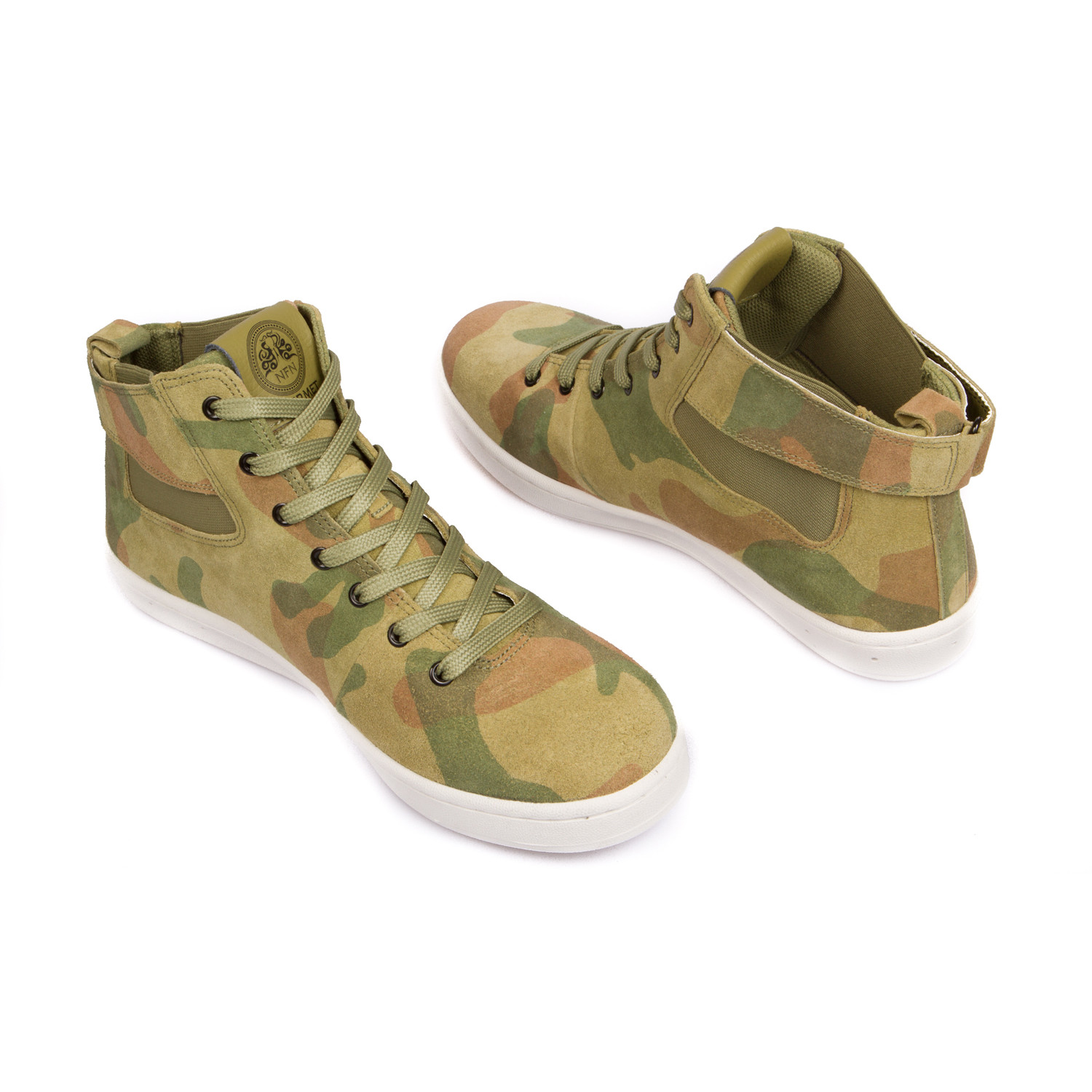 The Nove 2 is constructed on a classic athletic cupsole providing comfort and wearability. This mid-top is constructed in a versatile, imported Italian camouflage suede.