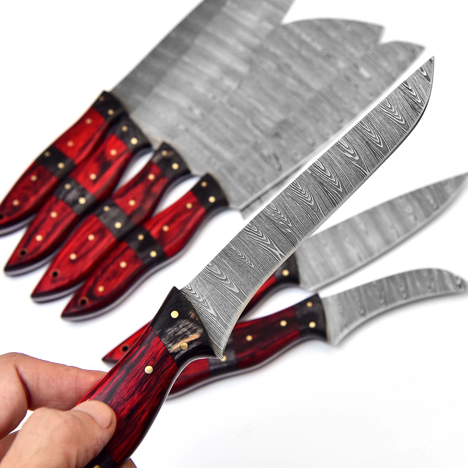 Damascus Chef Knife Set // Red Pakka Wood Handle