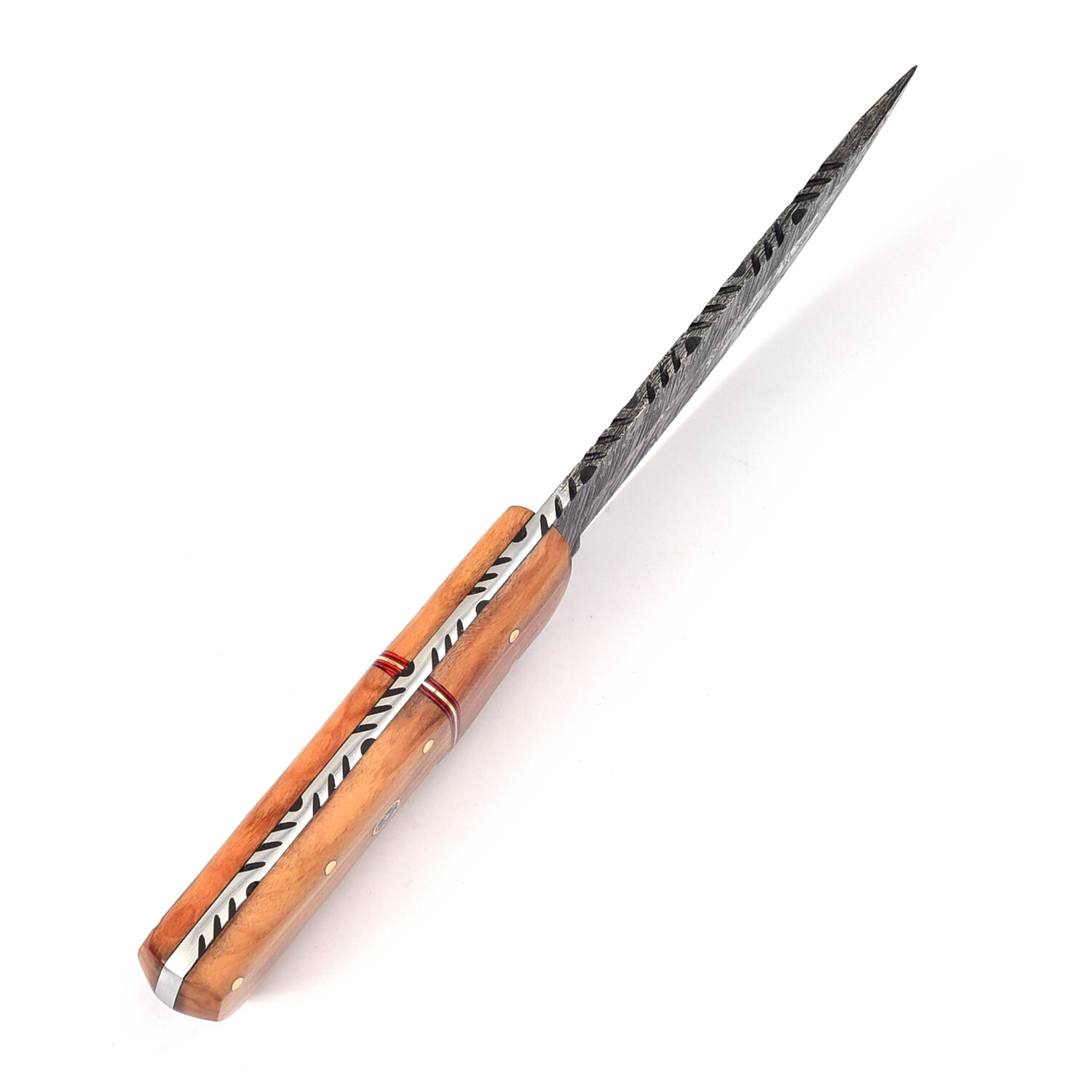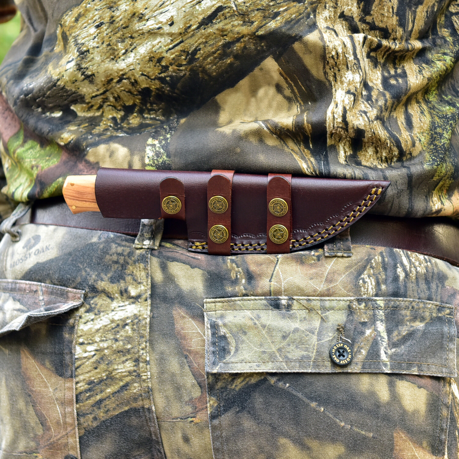— Care instruction: Damascus Steel can rust if not cared for properly, do not keep the knife in the leather sheath for a long period of time, and should be oiled regularly to prevent corrosion.