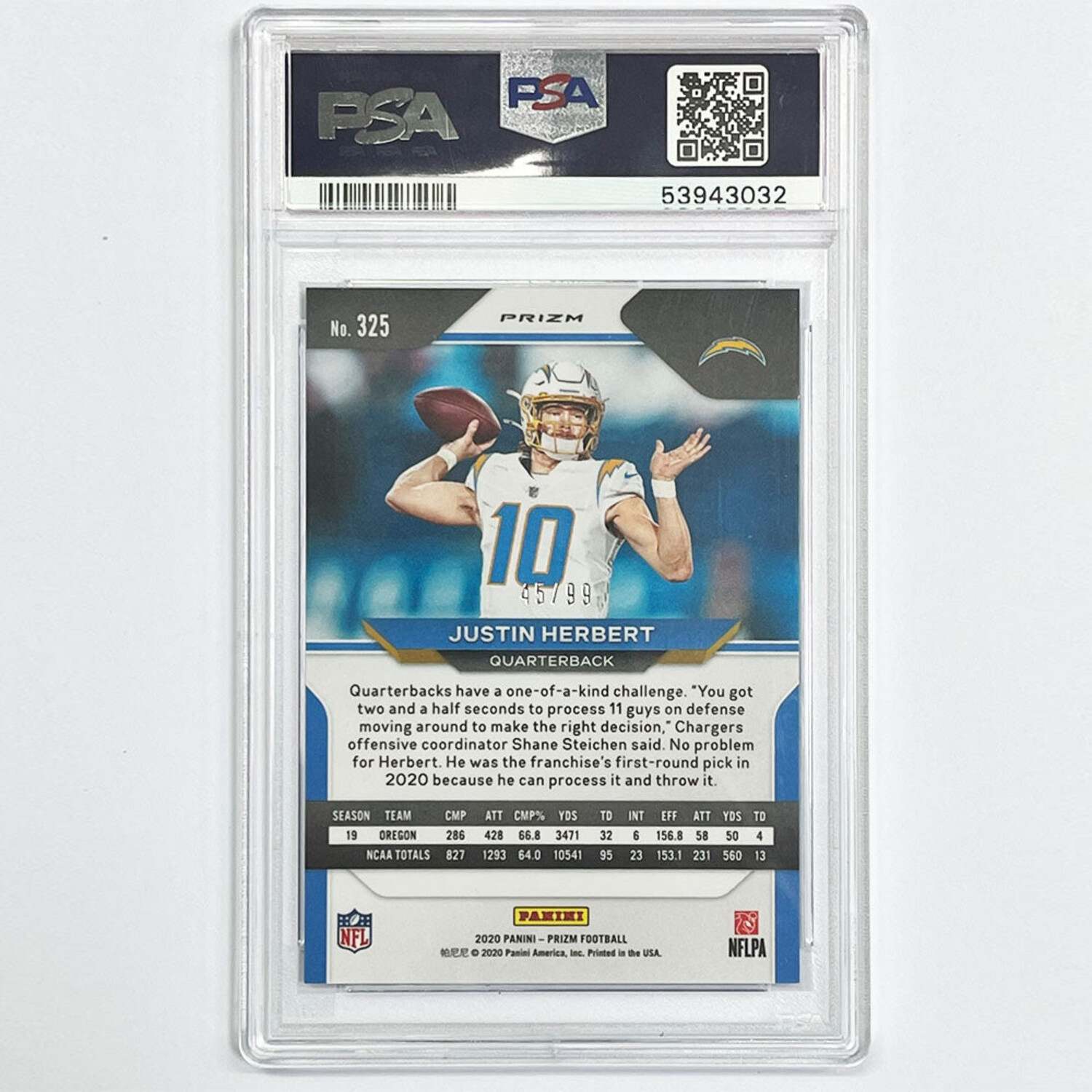 Justin Herbert 2020 Panini Prizm Blue Ice Rookie Card #45/99 - PSA 10