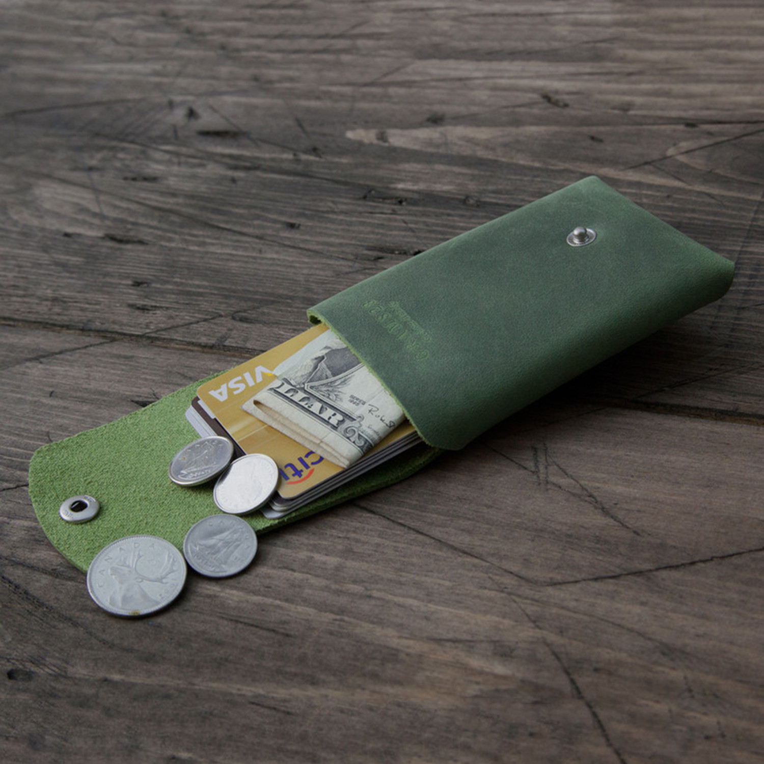 Constructed with a single piece of Italian oil pull-up leather, the Snap Card Case can hold folded cash, driver's license, credit cards, coins or business cards. The Snap Card Case offers slots for your most important cards to prevent you from carrying unnecessary things that make your wallet look bulky and overloaded.
