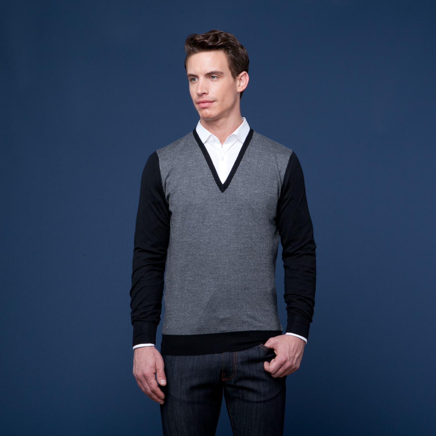 Gran Sasso’s line fine sweaters and jackets are woven on state-of-the-art knitting machines and cotton looms, and dyed with natural treatments developed in-house. As such, this Fine Gauge Merino Chevron V-Neck will get you through the winter in refinement and ease.