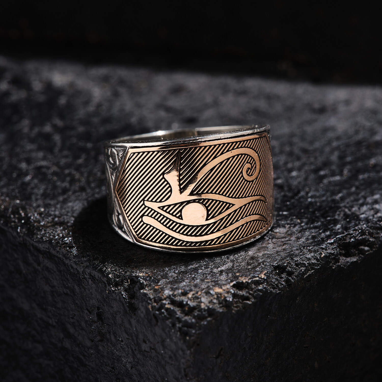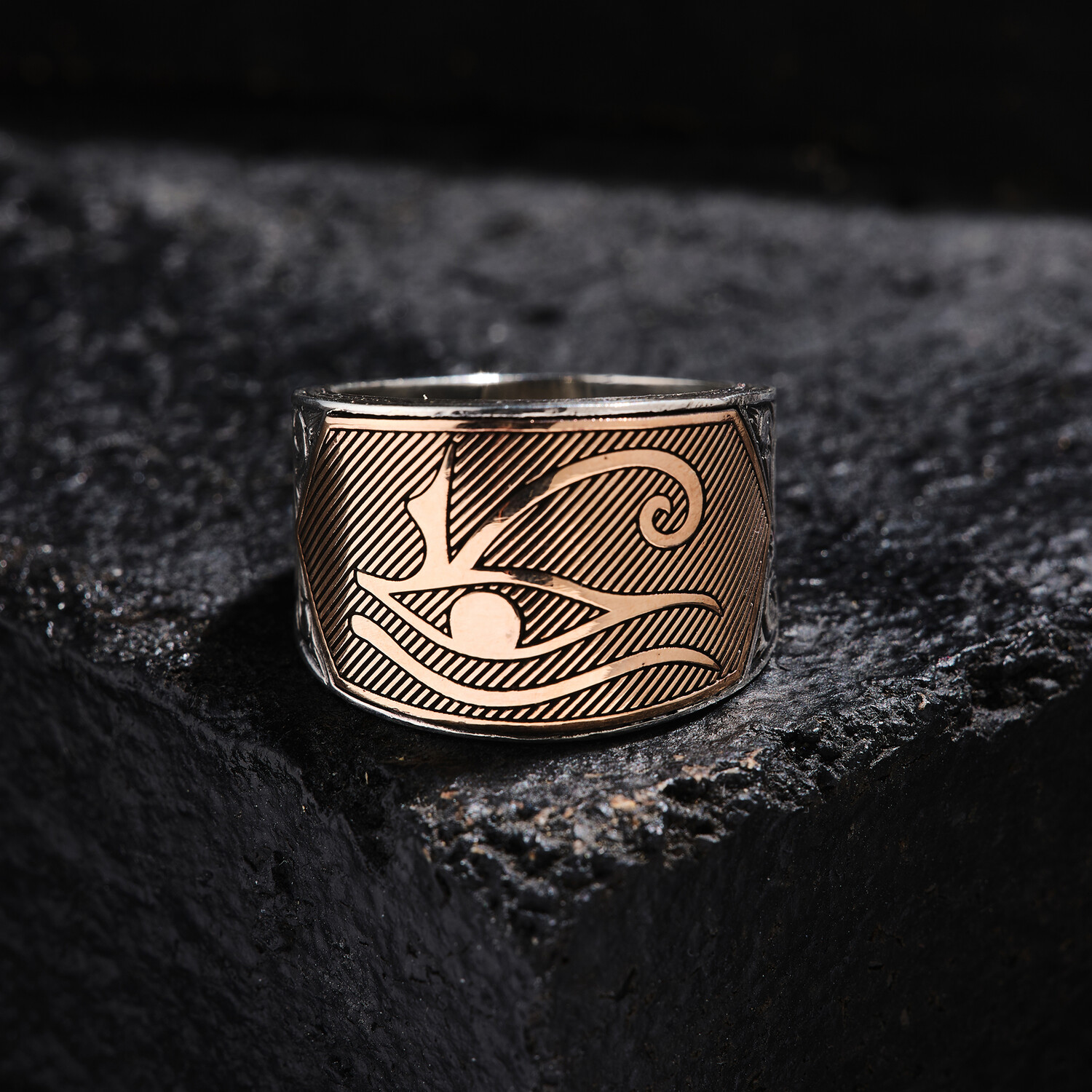 Eye of Horus Silver Design Ring // Oxidized Silver