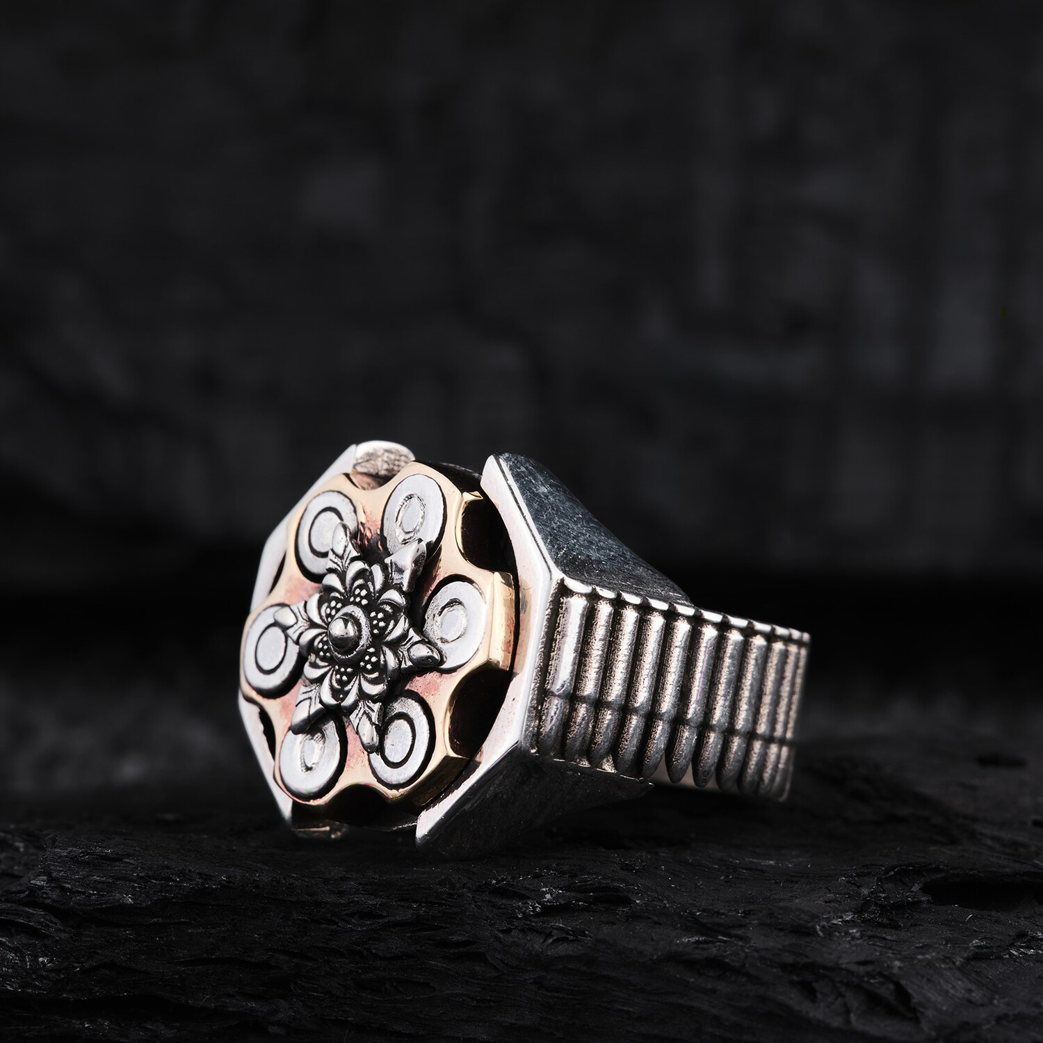 Revolver Rullette Design Silver Ring // Oxidized Silver