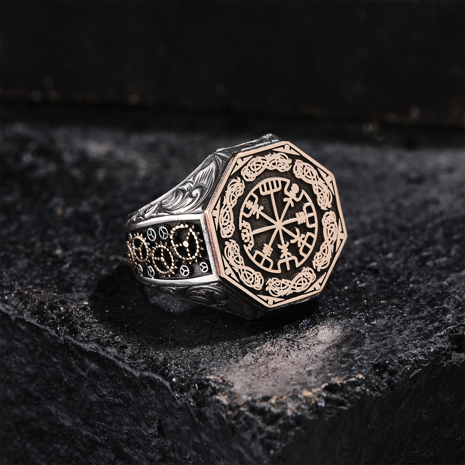 Vegvisir Design Silver Men's Ring // Oxidized Silver