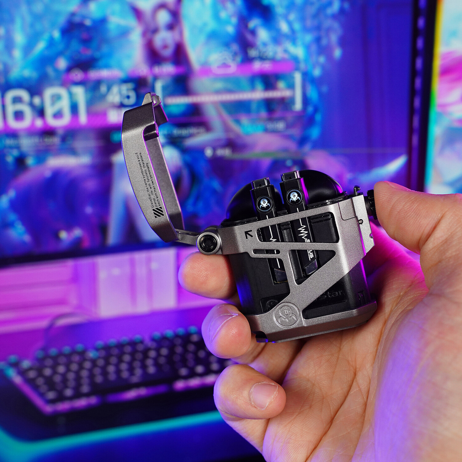 Switch up your look faster than skipping tracks. Your Sirius P5 earbuds arrive in a high-capacity charging case with a swappable outer shell, so you can match your case style to your music or your mood. Available in 5 different cyberpunk industrial designs, or jumpstart your collection with a 3-style combo pack.