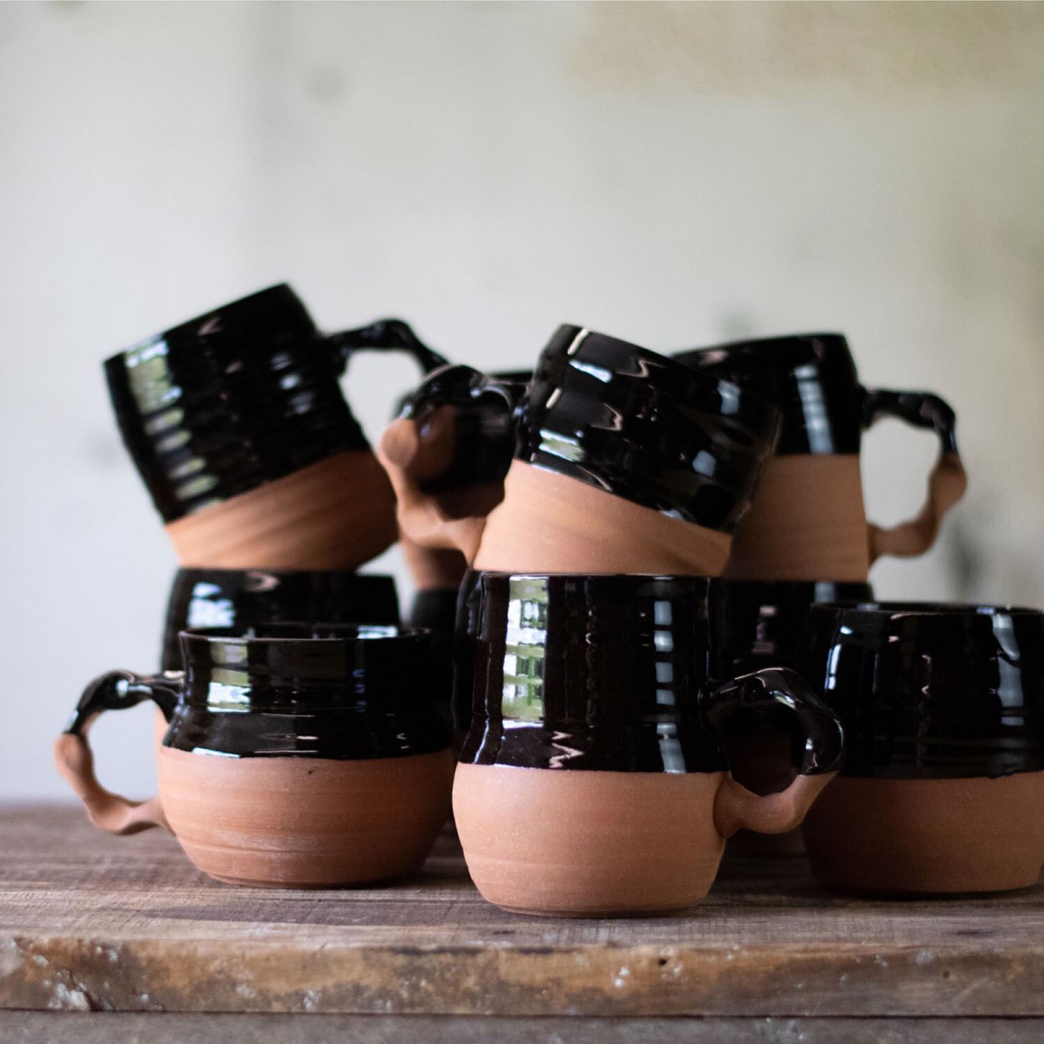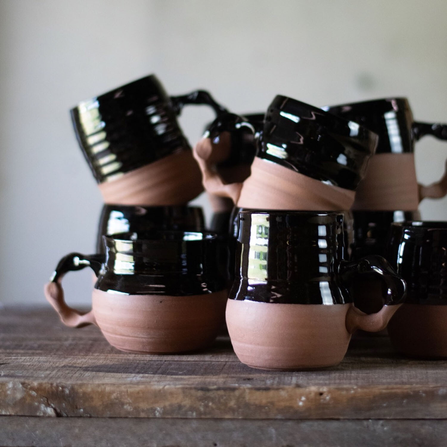 Each mug holds approximately 12-16 ounces of your favorite hot or cold beverage and has Rebecca’s signature handle that is pinched just so, as it is made, so your fingers rest right where hers do. It’s like holding hands but you won’t catch the cooties from it.