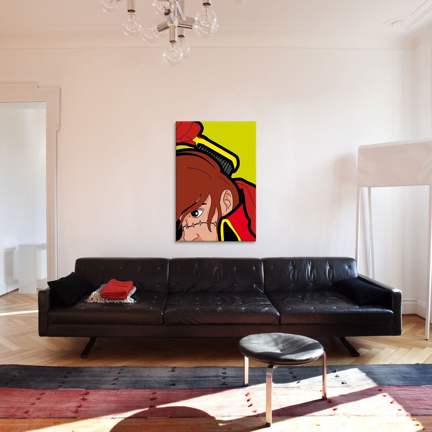 48-year old Grégoire Guillemin, aka "Léon", refuses to let his childhood passions fade quietly into the past. Science fiction, comic books, and video games still reign in his vibrant art. From 1930’s vintage to modern day Pop Art, his artworks rediscover and reinvent styles through experimentation with variegated, minimalistic techniques. This canvas is a testament to his unique style.