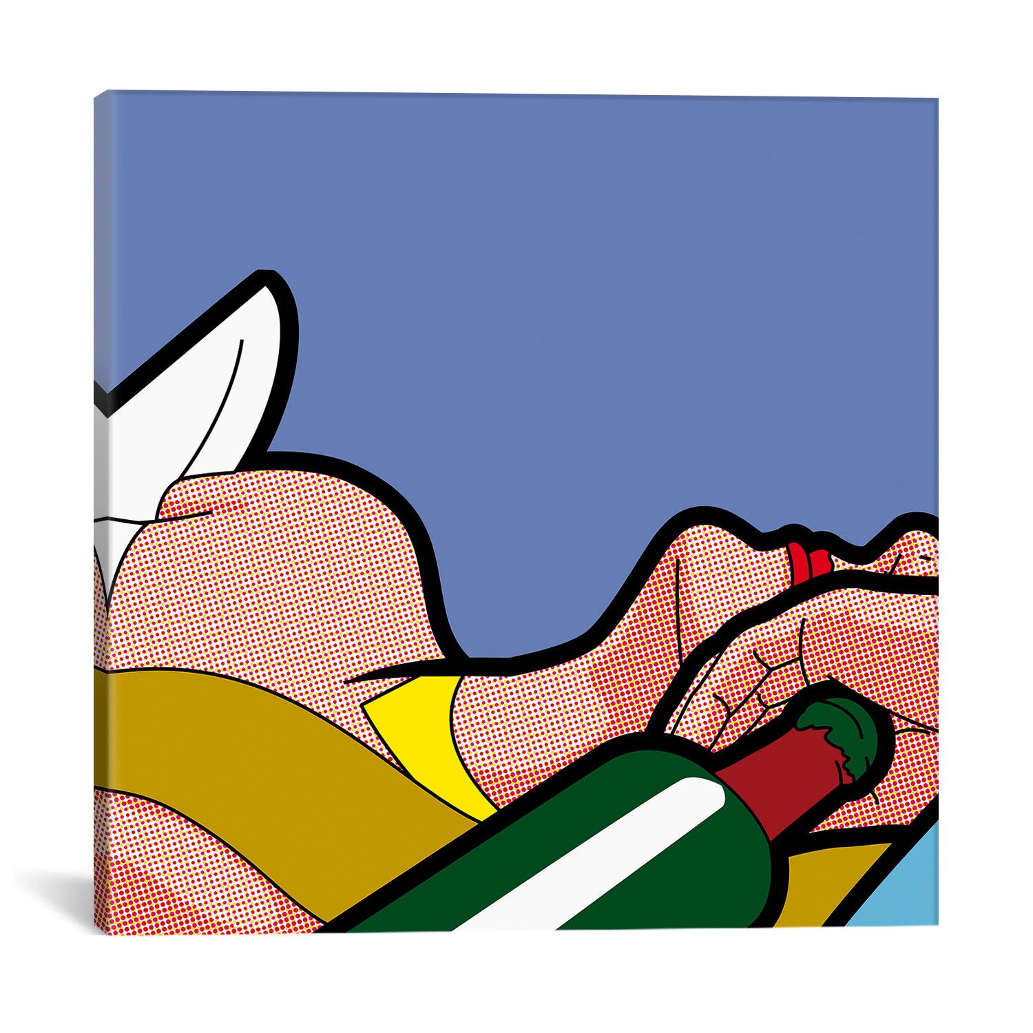 48-year old Grégoire Guillemin, aka "Léon", refuses to let his childhood passions fade quietly into the past. Science fiction, comic books, and video games still reign in his vibrant art. From 1930’s vintage to modern day Pop Art, his artworks rediscover and reinvent styles through experimentation with variegated, minimalistic techniques. This canvas is a testament to his unique style.