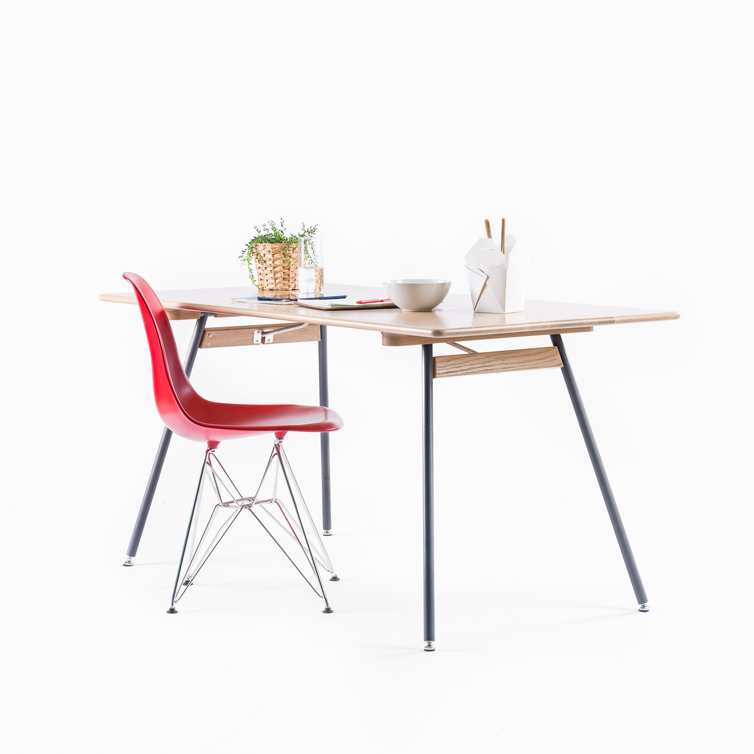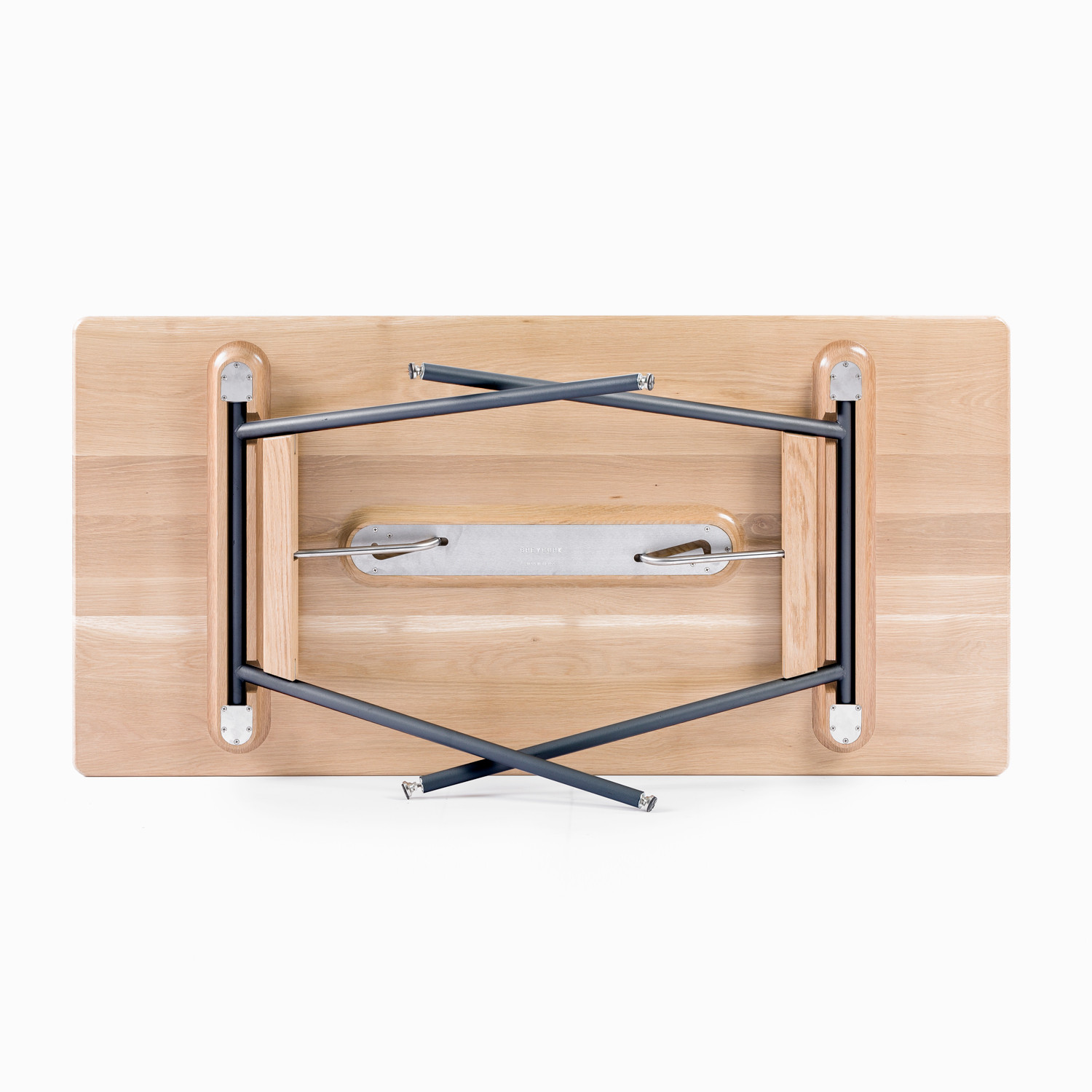 A great first piece for a new home, this White Oak Brooks Table features a textured hardwood white oak top. Minimal, light, and solid, you can seat six at the Brooks Table, way more people than you'll need to set it up. With folding legs, it's even ideal for special occasions or impressing guests at dinner.