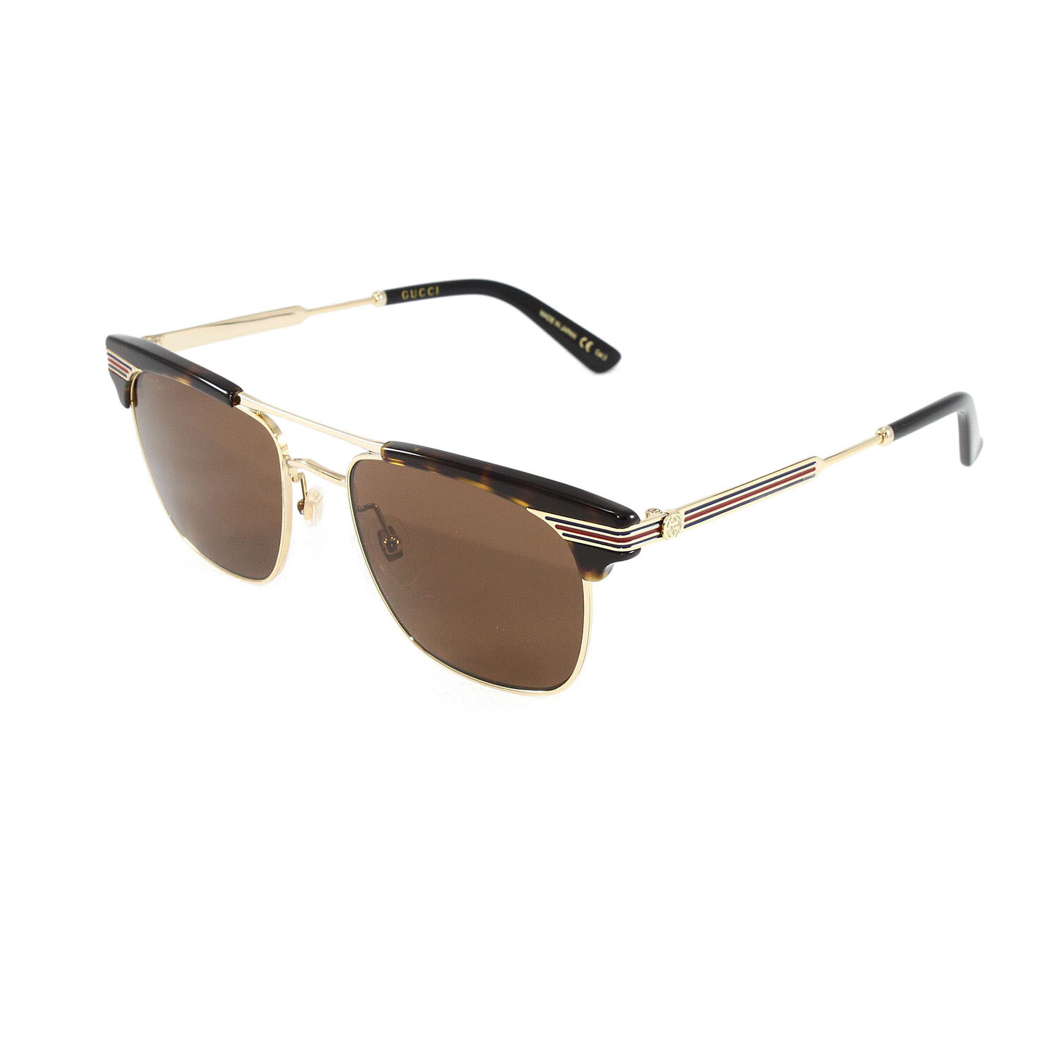 Men's Square Metal Sunglasses // Havana Gold + Brown