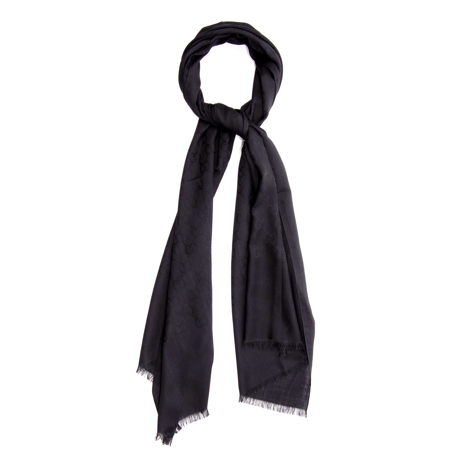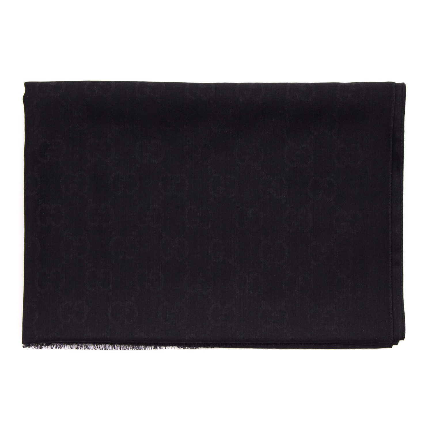 Gucci // Wide GG Wool + Silk Blend Scarf // Black