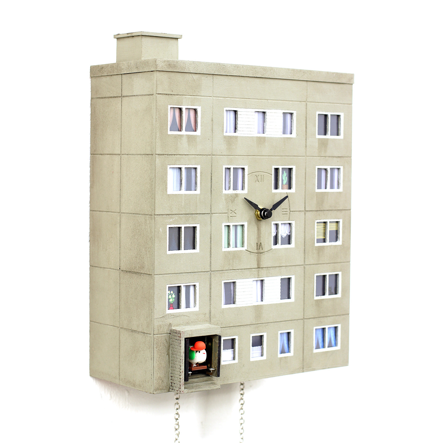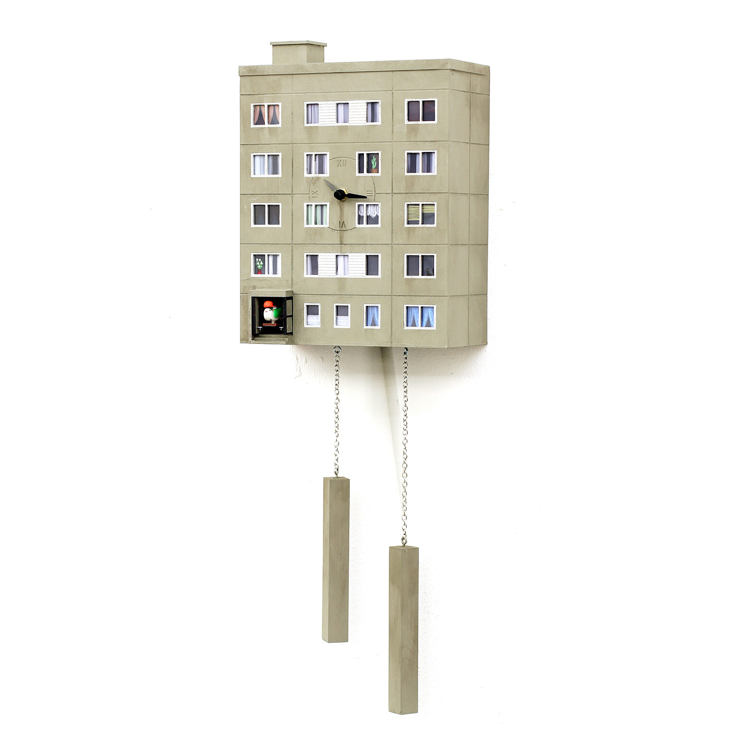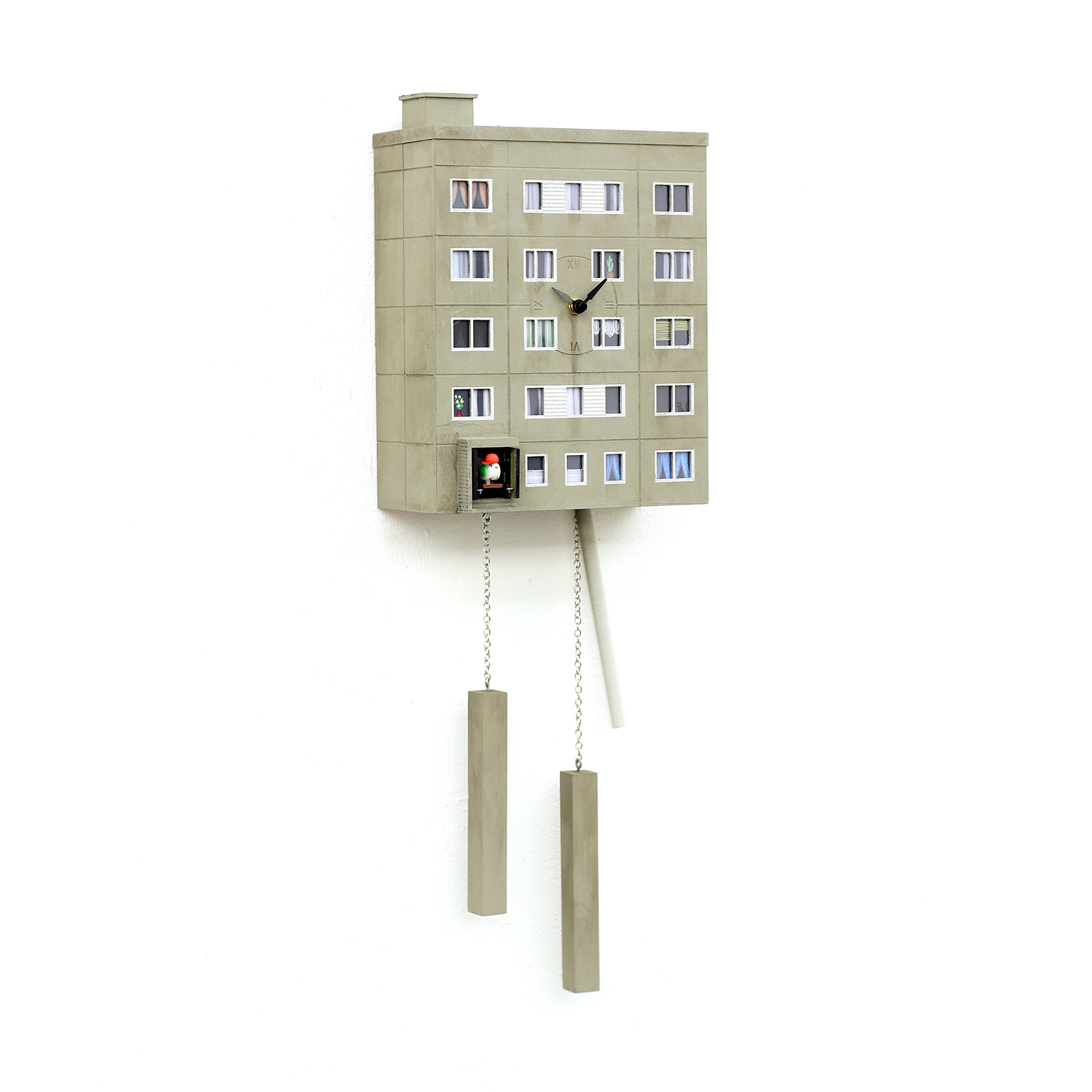The classic cuckoo clock is a symbol for prosperity in the middle class and is considered a kind of luxury for the home. The updated version, a prefabricated panel construction (“plattenbau”), reveals today's urban and social life in residential blocks.