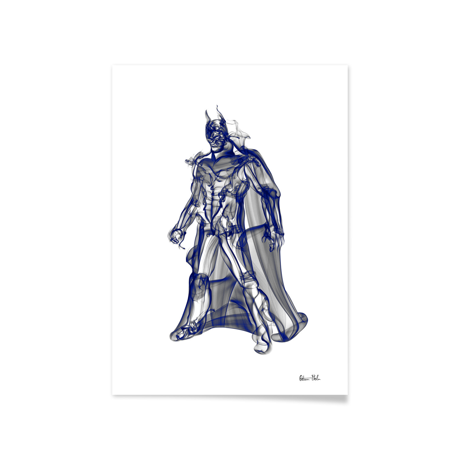 With a shape emerging from wisps of smoke, Batman is a unique portrait with a frame included. Signed by the artist himself, this print is the perfect way to celebrate your favorite superhero's story.