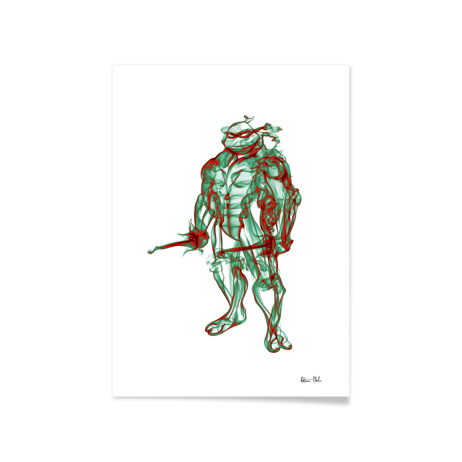 With a shape emerging from wisps of smoke, Raphael is a unique portrait with a frame included. Signed by the artist himself, this print is the perfect way to celebrate your favorite superhero's story.